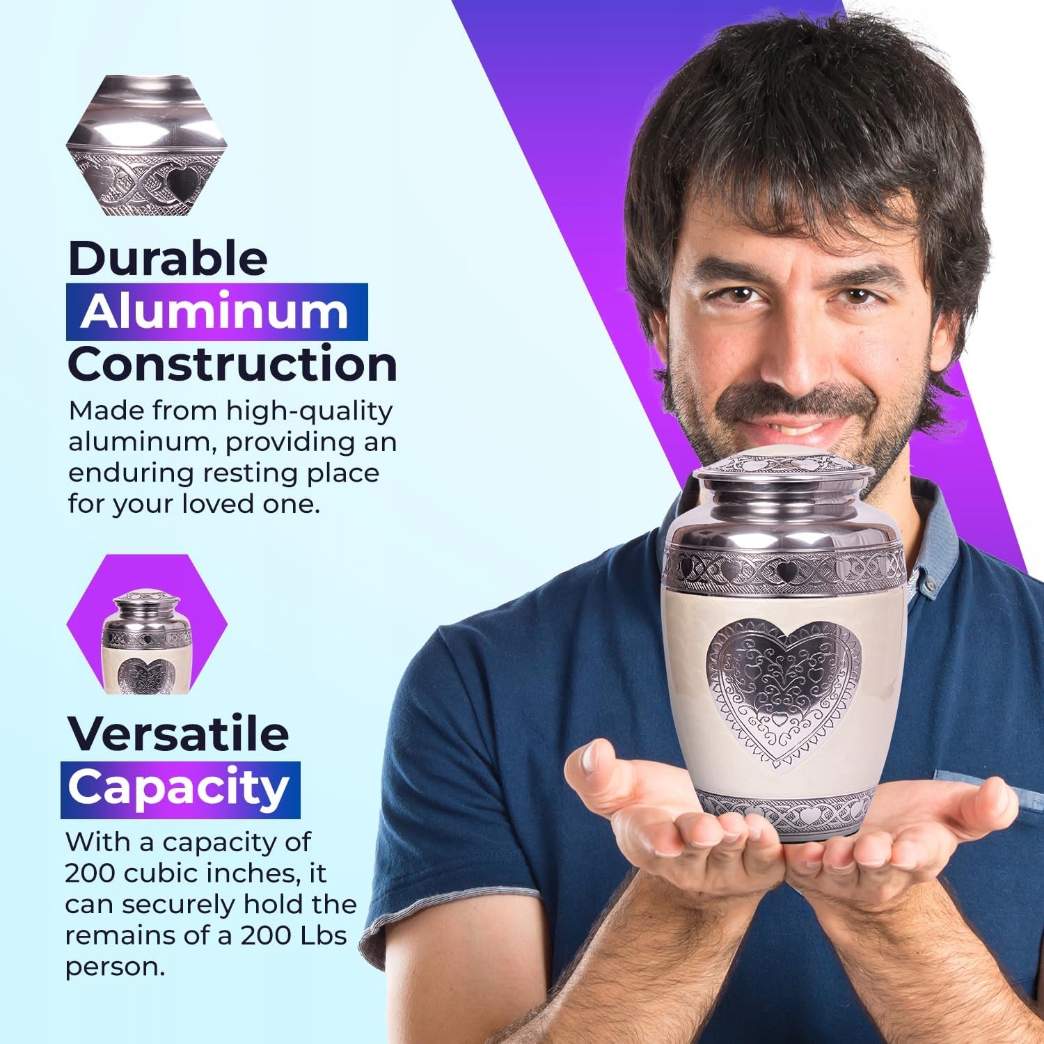 творча урна у формі серця - похоронна урна для людського попелу; 100% алюміній - великий розмір для дорослих до 90 кг