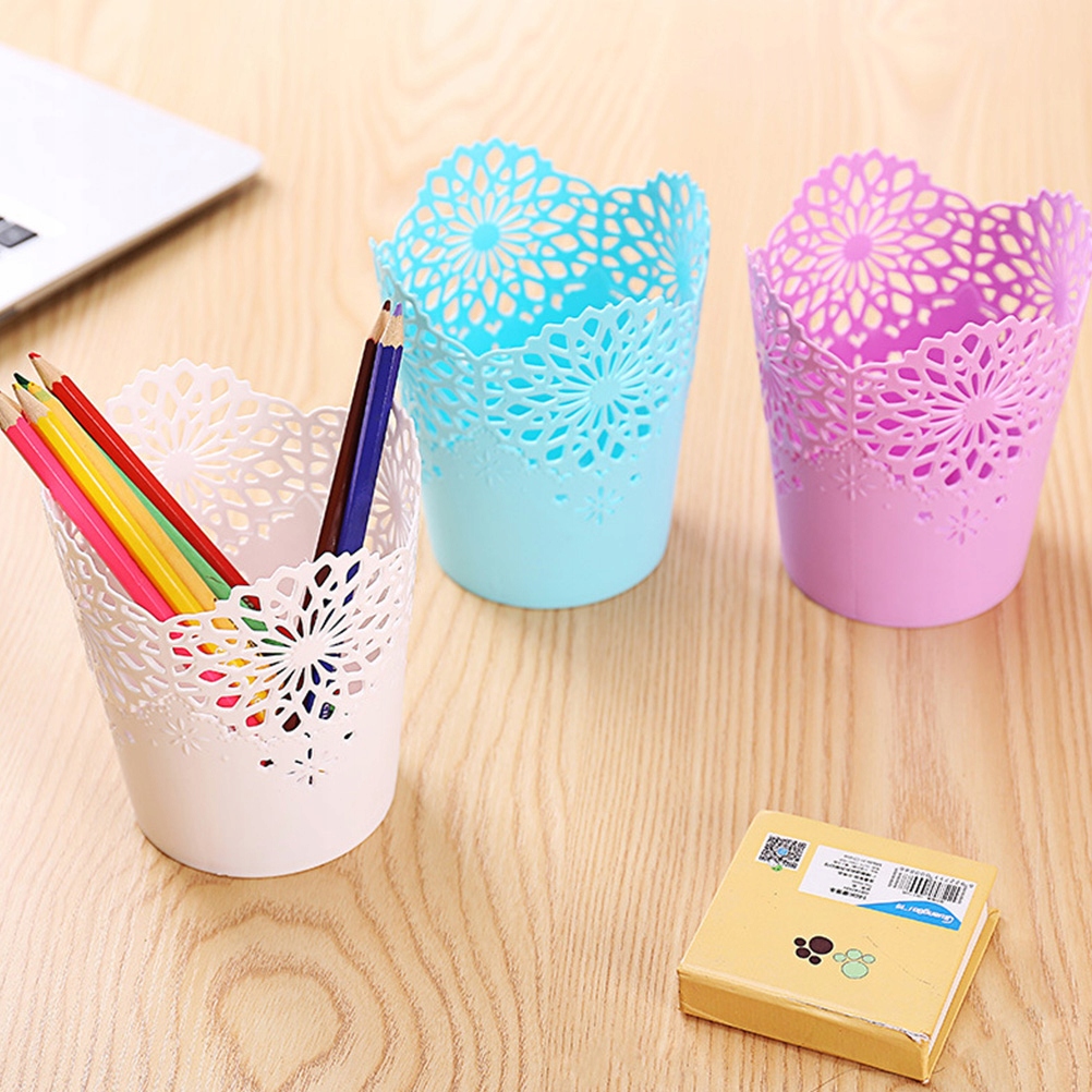 🌈 Це кошик для зберігання ручок із порожнистим малюнком, який виготовлений з пластикового матеріалу, довговічного і і може використовуватися протягом тривалого часу. Він невеликий і легкий, який не може зайняти багато місця на робочому столі, і ви можете використовувати його для зберігання ручок, косметики чи інших невеликих предметів на робочому столі.