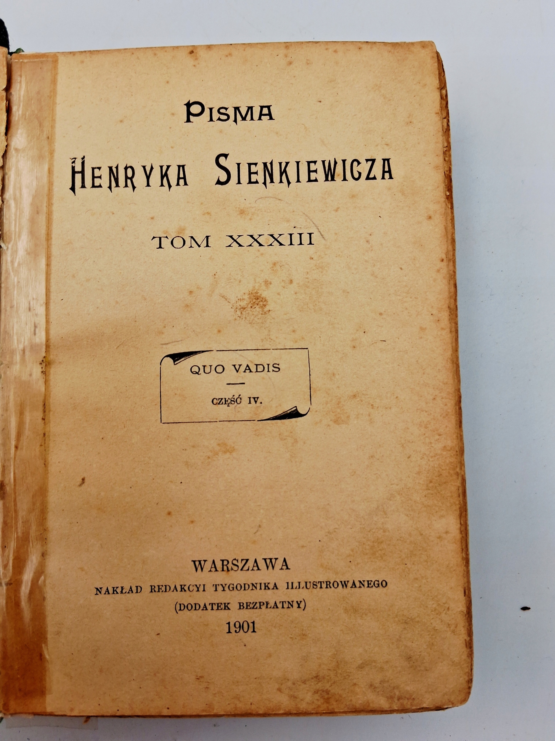 Опис: «Quo Vadis» — це монументальний роман Генрика Сенкевича, який розповідає про стародавній Рим за правління імператора Нерона. Том XXXIII, частина IV 1901 року, продовжує захоплюючу історію любові та жертовності, показуючи зіткнення язичницької та християнської культур. З точністю й тонкістю Сенкевич створює образ боротьби добра і зла, торкаючись моральних дилем і переконань, які пережили століття. Цей фрагмент роману наповнює читача роздумами про суть людської долі.