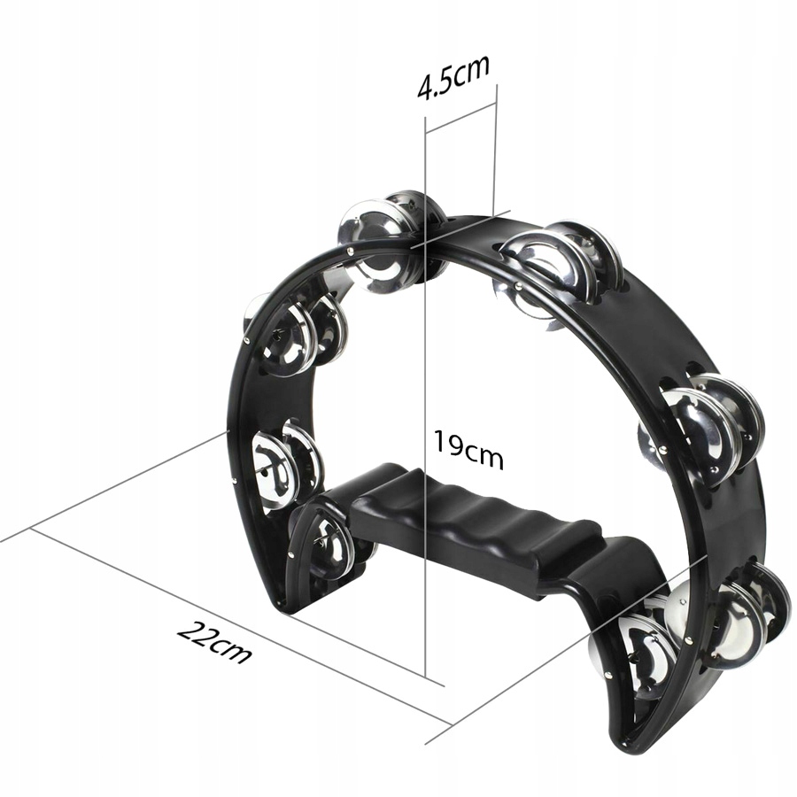 Соло бубон у формі одинарного півмісяця зі зручною профільованою ручкою. Виготовлений з міцного пластику, стійкого до пошкоджень. Він має два ряди дзвіночків, розташованих попарно, всього 16 пар.