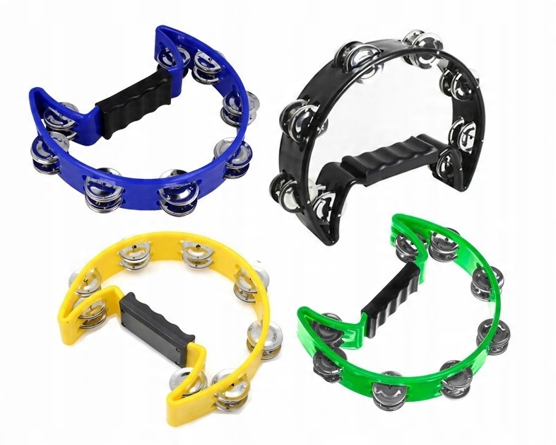 Соло бубон у формі одинарного півмісяця зі зручною профільованою ручкою. Виготовлений з міцного пластику, стійкого до пошкоджень. Він має два ряди дзвіночків, розташованих попарно, всього 16 пар.