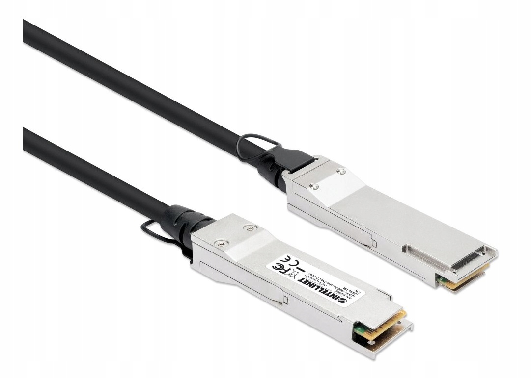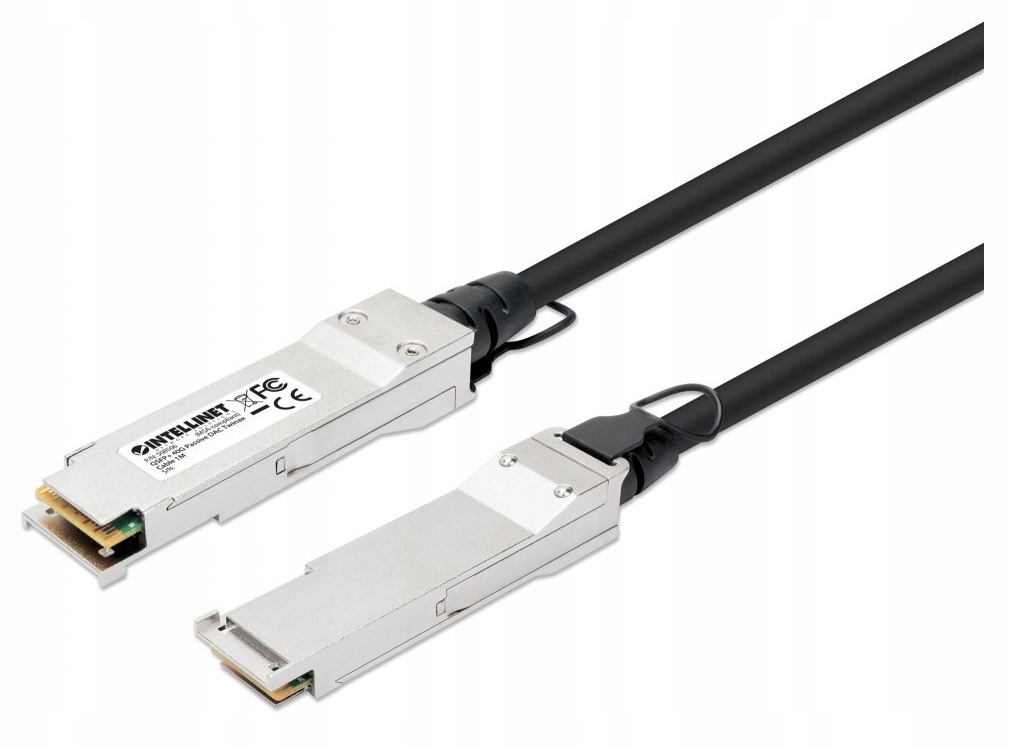 Intellinet Twinax Cable QSFP+ 40G DAC (Direct Attach Copper) Passive, довжина 1 м, призначений для підключення двох портів QSFP+, максимальна сумісність - MSA Compliant, пряме підключення через мідний кабель, AWG 30, колір чорний
