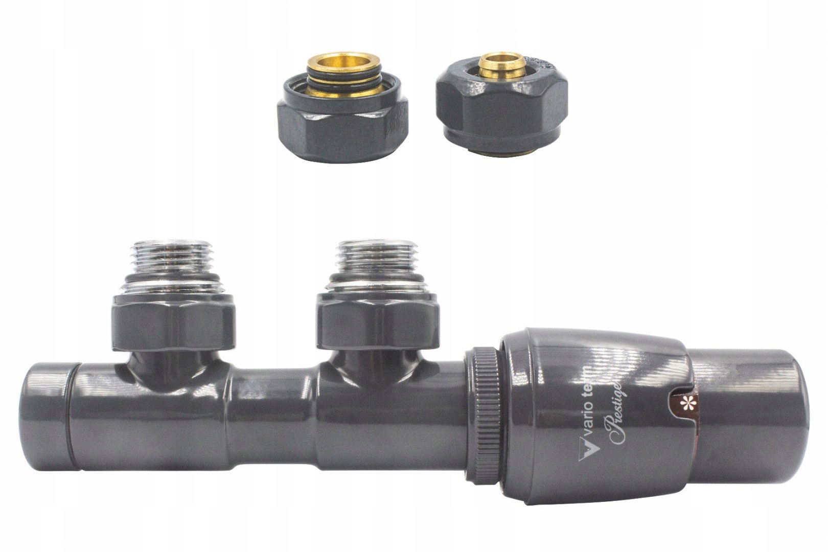 Термостатичний клапан 50 мм TWINS глянцевий графіт правий Pex