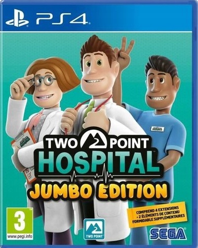 Two Point Hospital Jumbo Edition включає основну гру, чотири сюжетні розширення та два пакети доповнень, що складаються з 27 лікарень, 189 захворювань і багато різних предметів для розміщення у ваших лікарнях.