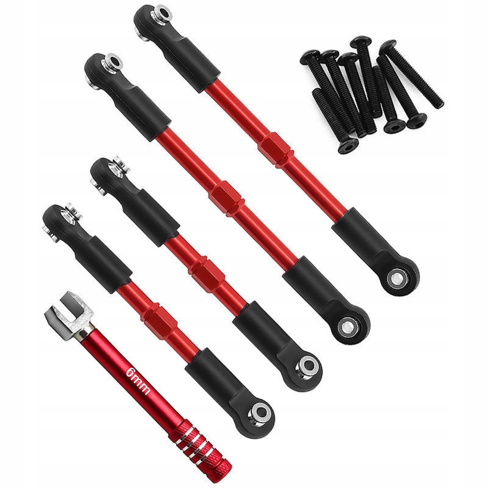 [Конструкція з прецизійного алюмінієвого сплаву]: виготовлені з якісного алюмінієвого сплаву, ці тягові тяги з стяжною муфтою забезпечують надійну довговічність і надійність керування вашим автомобілем із дистанційним керуванням у масштабі 1/10, забезпечуючи надійну роботу під час змагань на високій швидкості