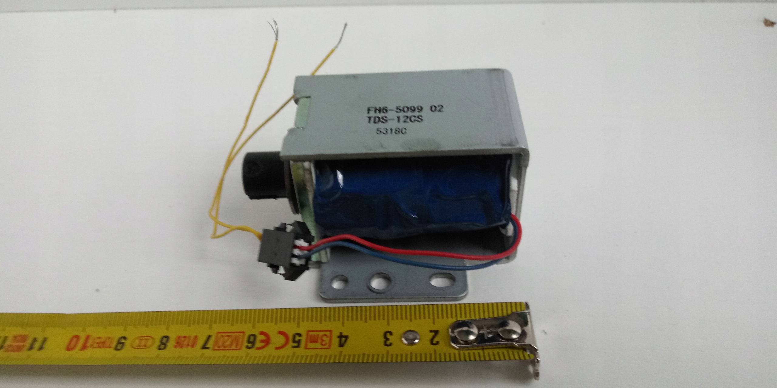 Тяговий електромагніт TDS-12CS, розміри корпусу 53x38x30 мм, діаметр висувного штифта fi12 мм, опір котушки 30 Ом