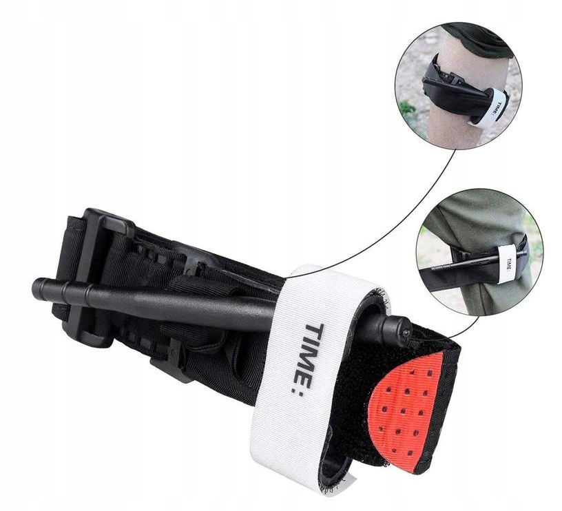 - Завдяки довгому ремінцю на липучці ви можете легко розстібнути пряжки з одного боку однією рукою, що полегшує накладання джгута на кінцівку та швидке регулювання довжини пов'язка