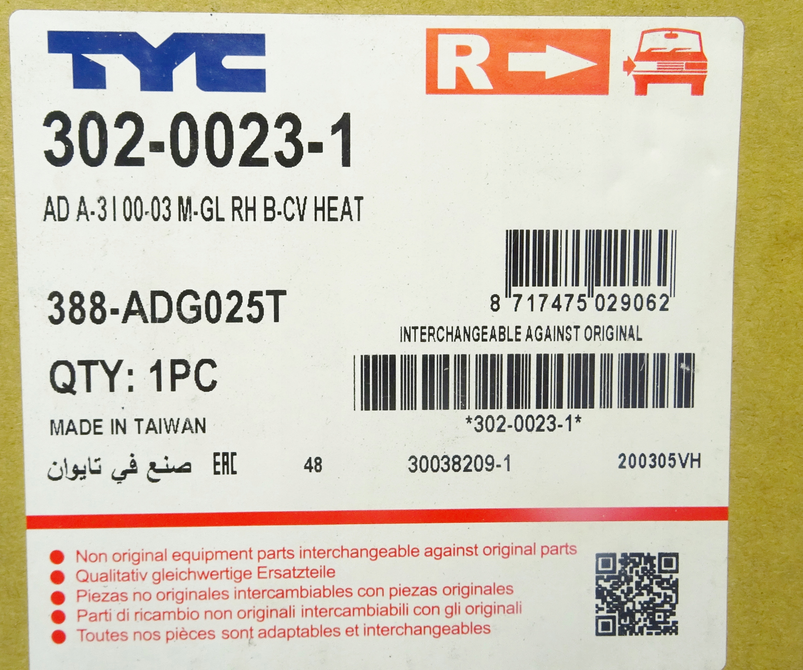 TYC 302-0023-1 Дзеркальне скло, зовнішнє дзеркало