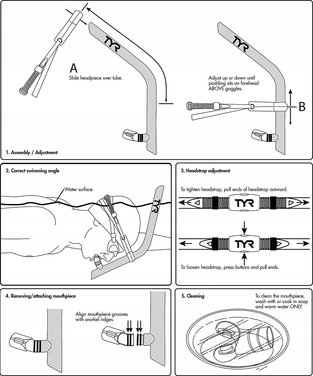 Наголовна труба TYR Ultralite Snorkel Elite була розроблена для використання під час тренувань з плавання, щоб зосередитися на техніці плавання, балансі та правильному положенні у воді. LSNKLELT має гідродинамічну форму, що дозволяє пересуватися у воді без зайвого опору. Прості та безпечні кнопки розблокування на задній частині ремінця забезпечують швидке та легке регулювання, а висувна головка забезпечує правильне розташування. Для легшого дихання в комплекті є односторонній вентиляційний клапан.
