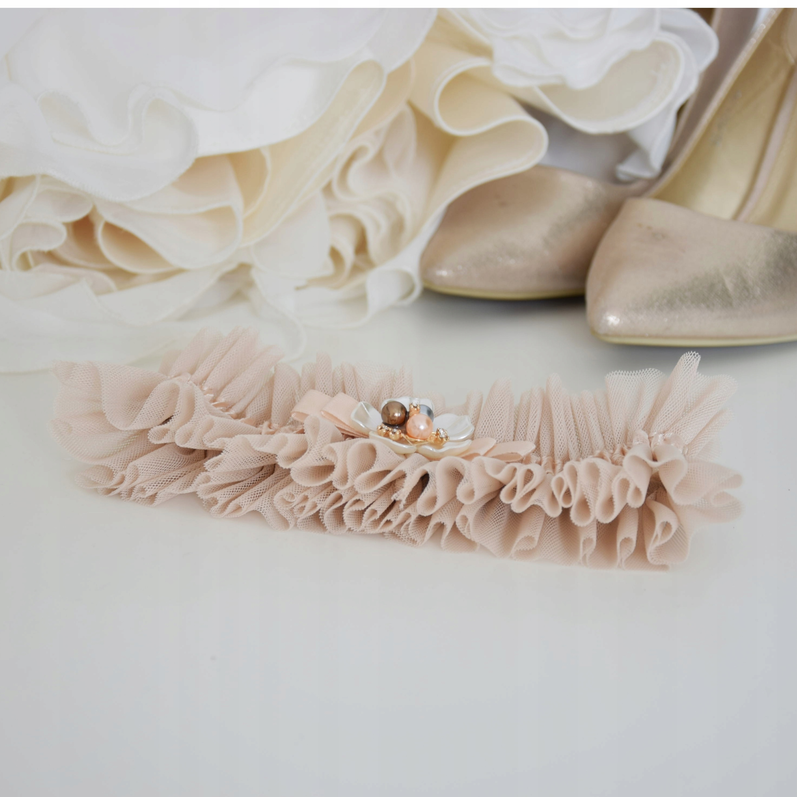 Тюль рожева весільна підв'язка, делікатний та елегантний аксесуар для весілля, бежева