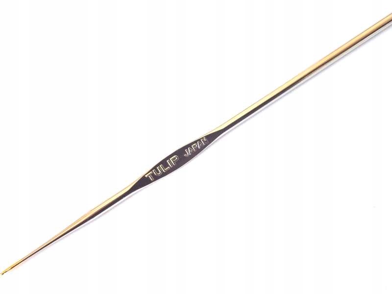 Гачок для в'язання з високоякісної сталі з позолоченим наконечником і захисним ковпачком.