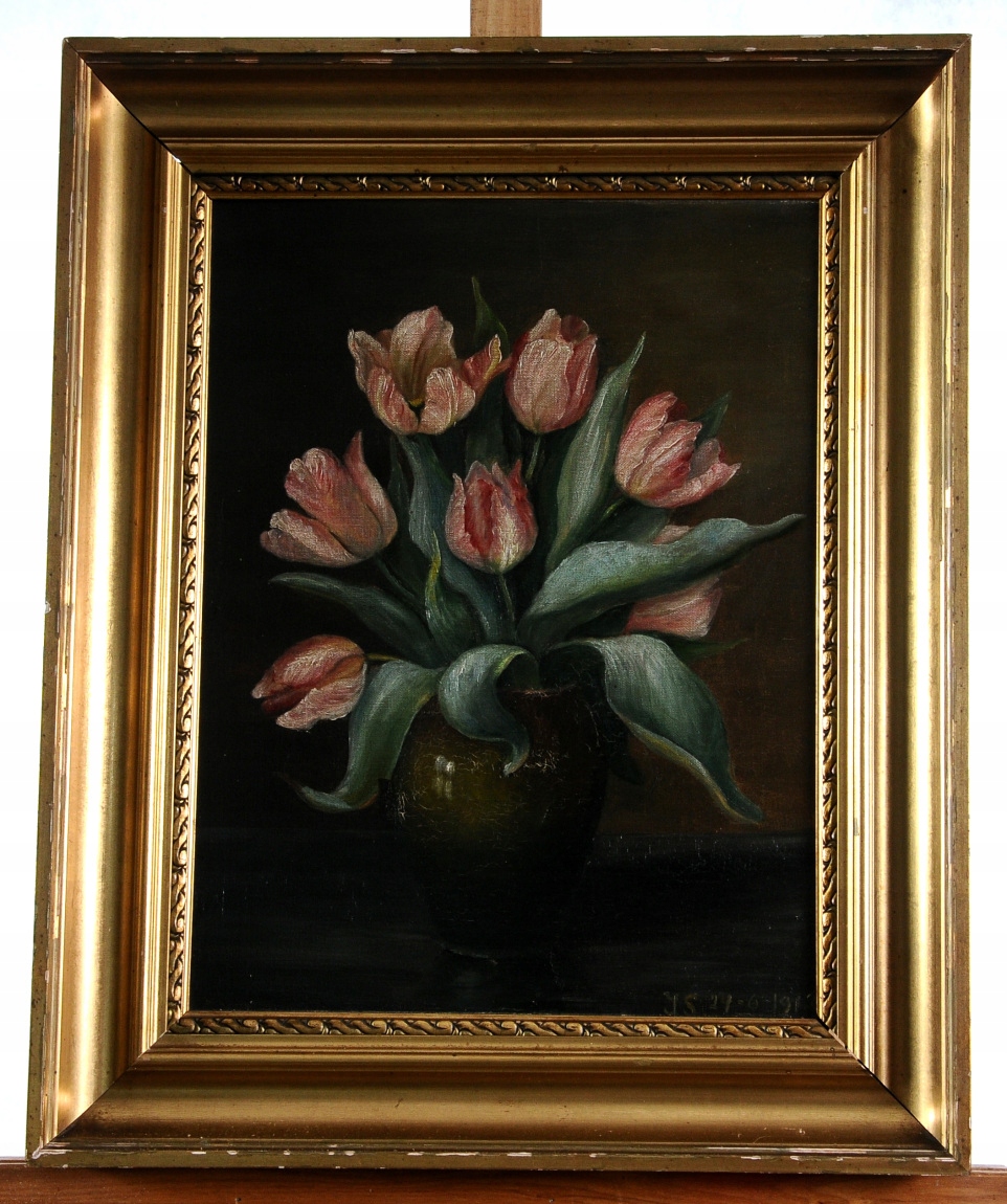 "Тюльпани у вазі" красива дуже стара масляна картина 1913 !!!