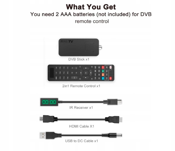 - [Mini HDMI Stick]: декодер розроблений, щоб сховатися за вашим телевізором і зробити його простим, ви можете легко керувати декодером за допомогою розширеного ІЧ-сенсора li > [Full HD 1080p]: вихід HDMI для Full HD1080P HEVC H.265 10Bit, просто під’єднайте телевізійну приставку безпосередньо до порту HDMI телевізора, ви зможете легко насолоджуватися безкоштовними каналами DVB-T2 / DVB-T HD. li>