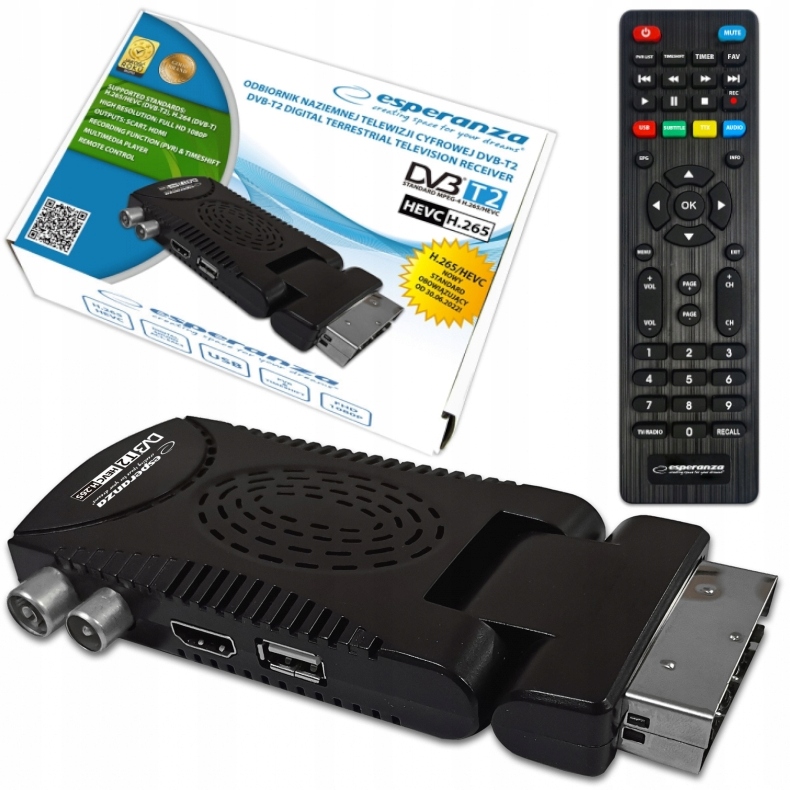 Остання сучасна версія декодера цифрового ефірного телебачення DVB-T/T2. Він дозволяє приймати безкоштовне цифрове ефірне телебачення високої чіткості в стандартах MPEG-2, MPEG-4 H.264/AVC і H.265/HEVC. Відтворює звук, сумісний з MPEG-1 (Layer 1,2,3) AAC, E-AC3. Має вбудовану функцію запису програм (Personal Video Recording) в цифровій якості з можливістю відкладеного відтворення (Timeshift). Усі функції легко доступні в меню та безпосередньо з функціонального пульта дистанційного керування. Декодер оснащений портом USB, який дозволяє підключати зовнішні носії інформації та записувати або відтворювати файли та фотографії з них. Він має вбудований роз'єм SCART і HDMI, тому працює з більшістю телевізійних приймачів, доступних на ринку.
