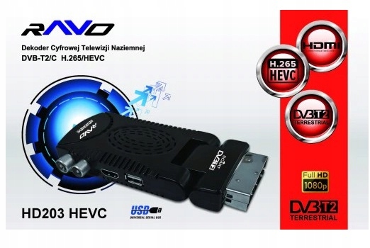 Тюнер цифрового ефірного телебачення DVB-T2 RAVO HD202 HEVC дозволяє прийом безкоштовних цифрових каналів телевізійного мовлення в стандарті H.265/HEVC. Його також можна використовувати як високоякісний мультимедійний програвач і записувач PVR.