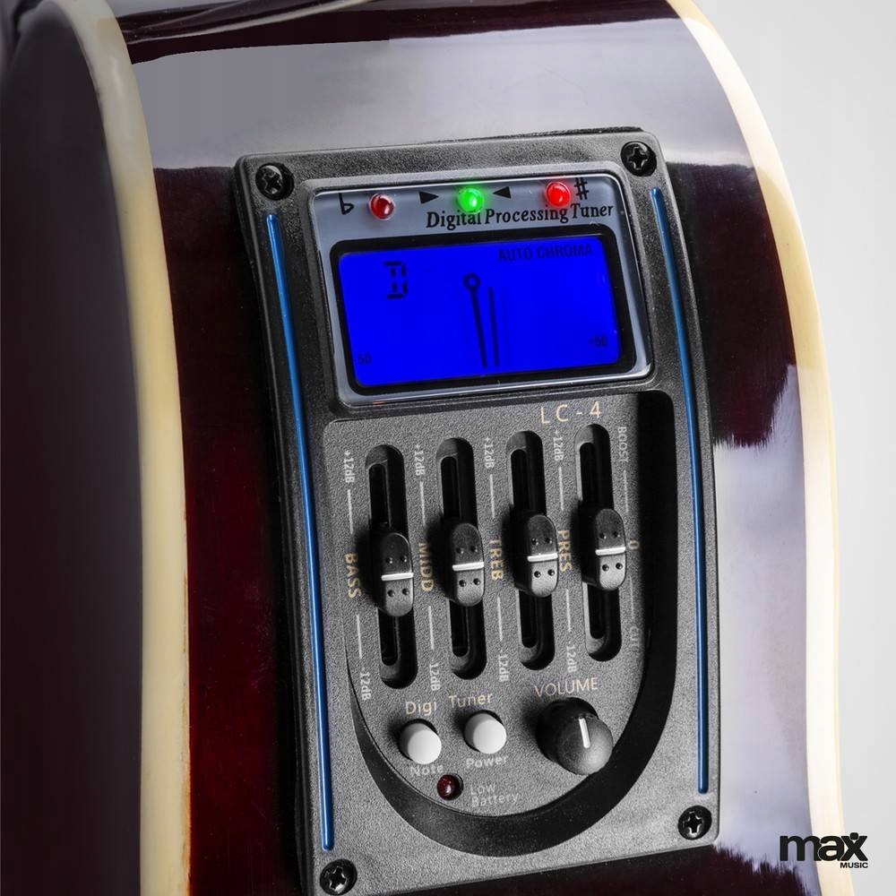 Підключіть свою гітару до 40-ватного підсилювача, що входить у комплект, і продемонструйте свої навички більшій аудиторії. Представлена гітара являє собою повнорозмірну модель Dreadnought з вирізом. Призначений для кожного користувача старше десяти років. Крім гітари та підсилювача, набір включає медіатори, футляр для гітари, цифровий тюнер, гітарний кабель і набір запасних струн, що означає, що купуючи цей набір, ви майже відразу готові розпочати або продовжити свою пригоду з навчитися грати або презентувати свої навички своїм друзям чи родині.