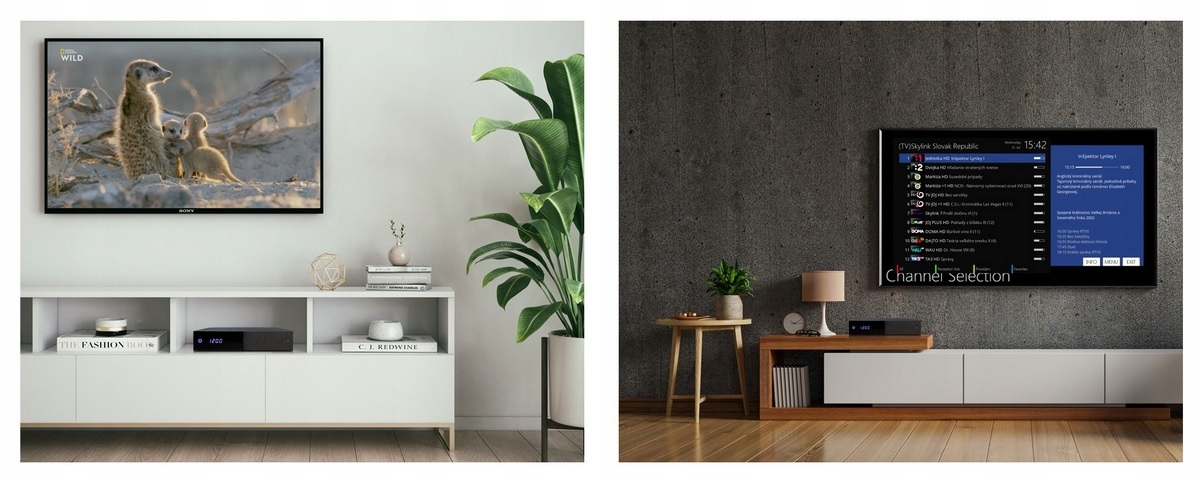 Елегантний дизайн приймача впишеться в будь-яку вітальню. На передній панелі розташований 7-сегментний світлодіодний дисплей. Під кришкою ви знайдете 1x пристрій для читання карток, 2x слоти для модуля CI/CI+, 1x USB 2.0 і 1x слот для карток microSD, які ви можете використовувати як внутрішню пам’ять для своїх записів. На задній панелі є вбудований подвійний супутниковий тюнер DVB-S2X. Окрім використання картки microSD як внутрішньої пам’яті, ви можете легко вставити 2,5-дюймовий жорсткий диск у приймач за допомогою системи ящиків для жорсткого диска. На задній панелі ви також знайдете оптичний цифровий аудіовихід S/PDIF, USB 2.0, Ethernet RJ45, гніздо для ІЧ-подовжувача (в комплекті з приймачем), вимикач живлення та вхід для зовнішнього джерела живлення DC 12V-3A.