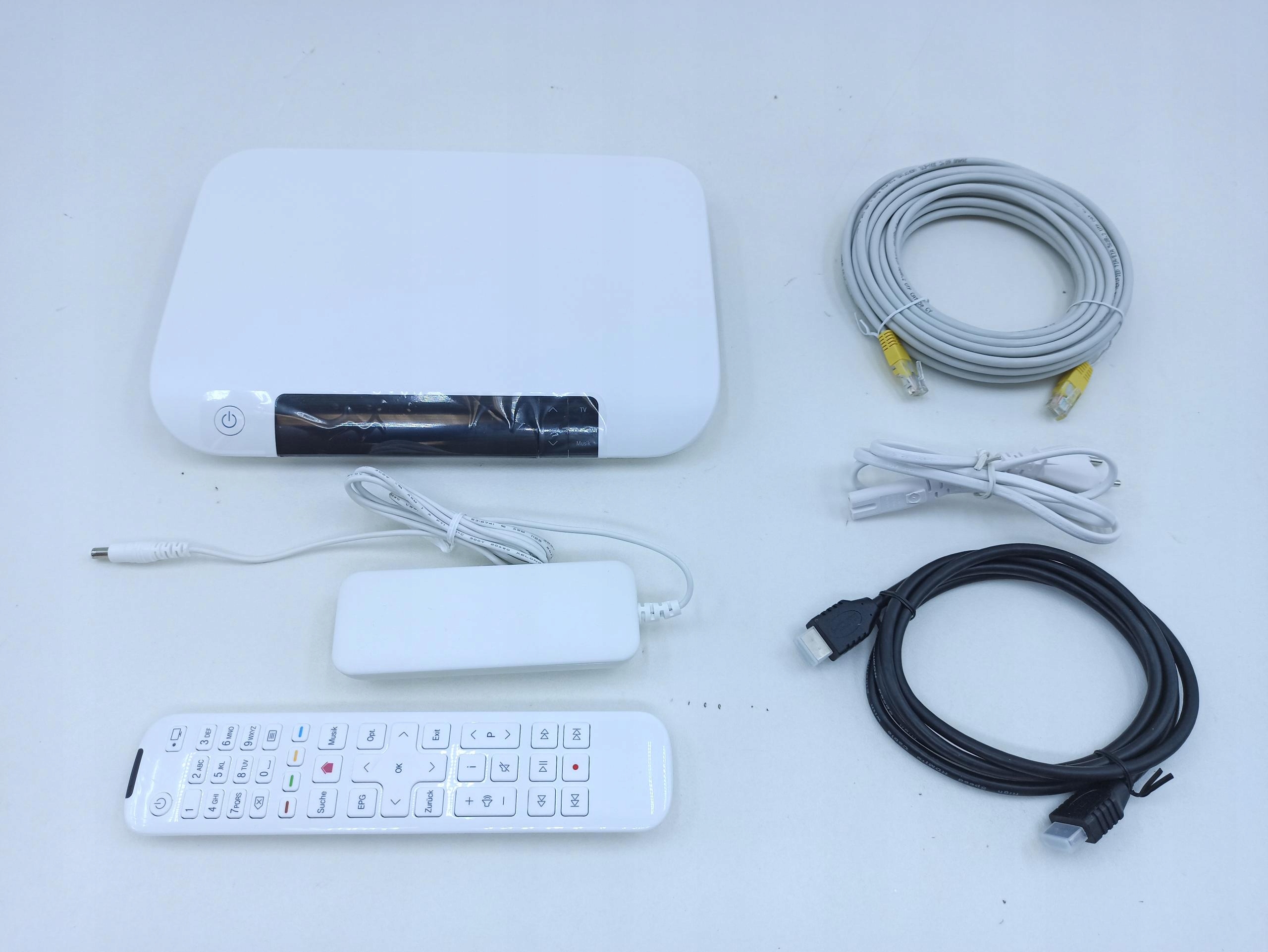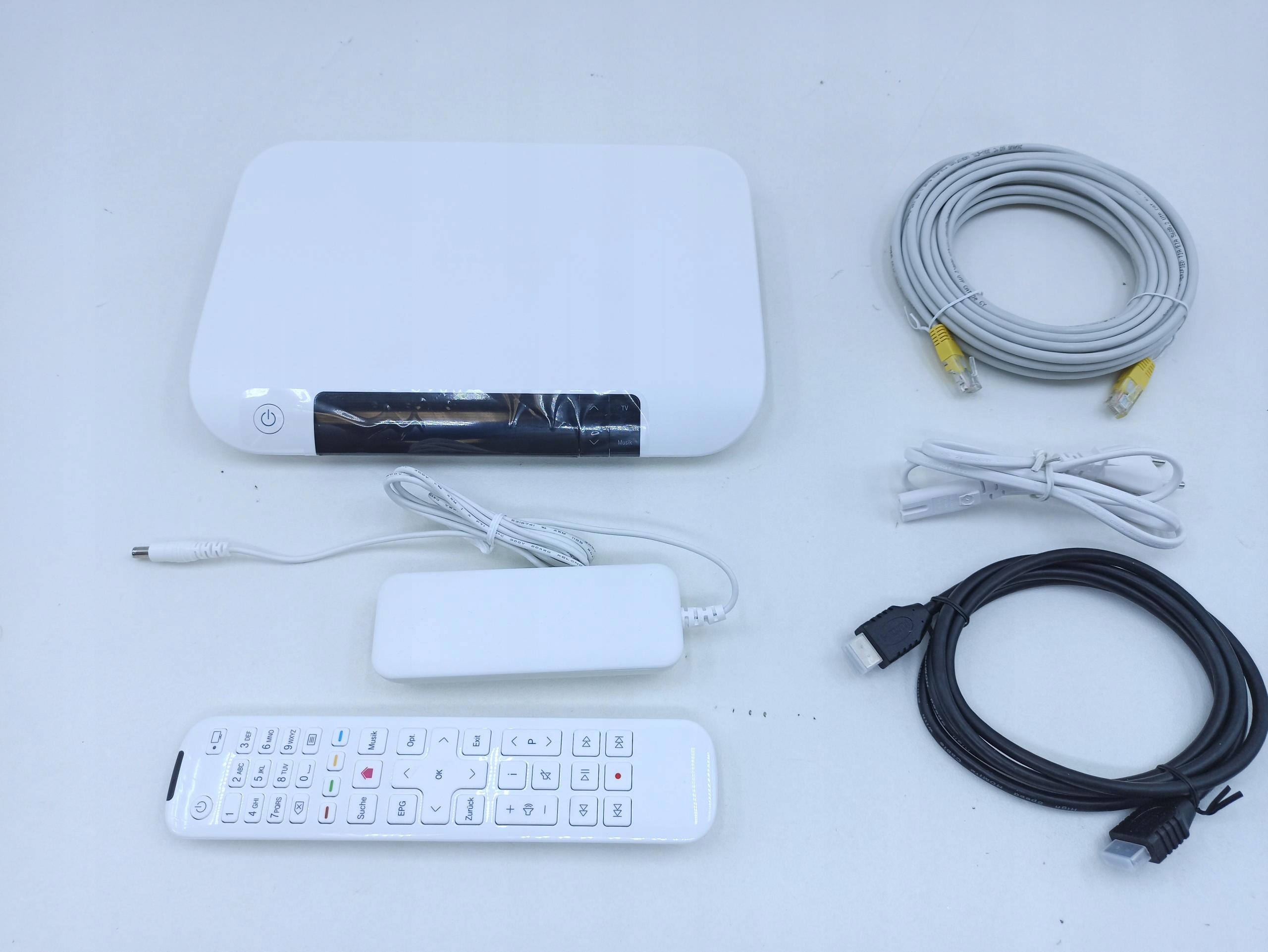 Помітний невеликий бруд, ТВ-приставка, кабелі, блок живлення, пульт дистанційного керування в комплекті