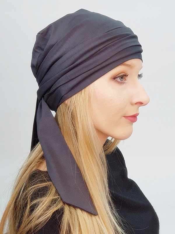 В універсальному розмірі, з додатковою гумкою ззаду, підходить для обхвату від 55-60 см - також регулюється за допомогою лямок, ви можете притиснути його більше або менше до голови при зав'язуванні. Без зморшок.