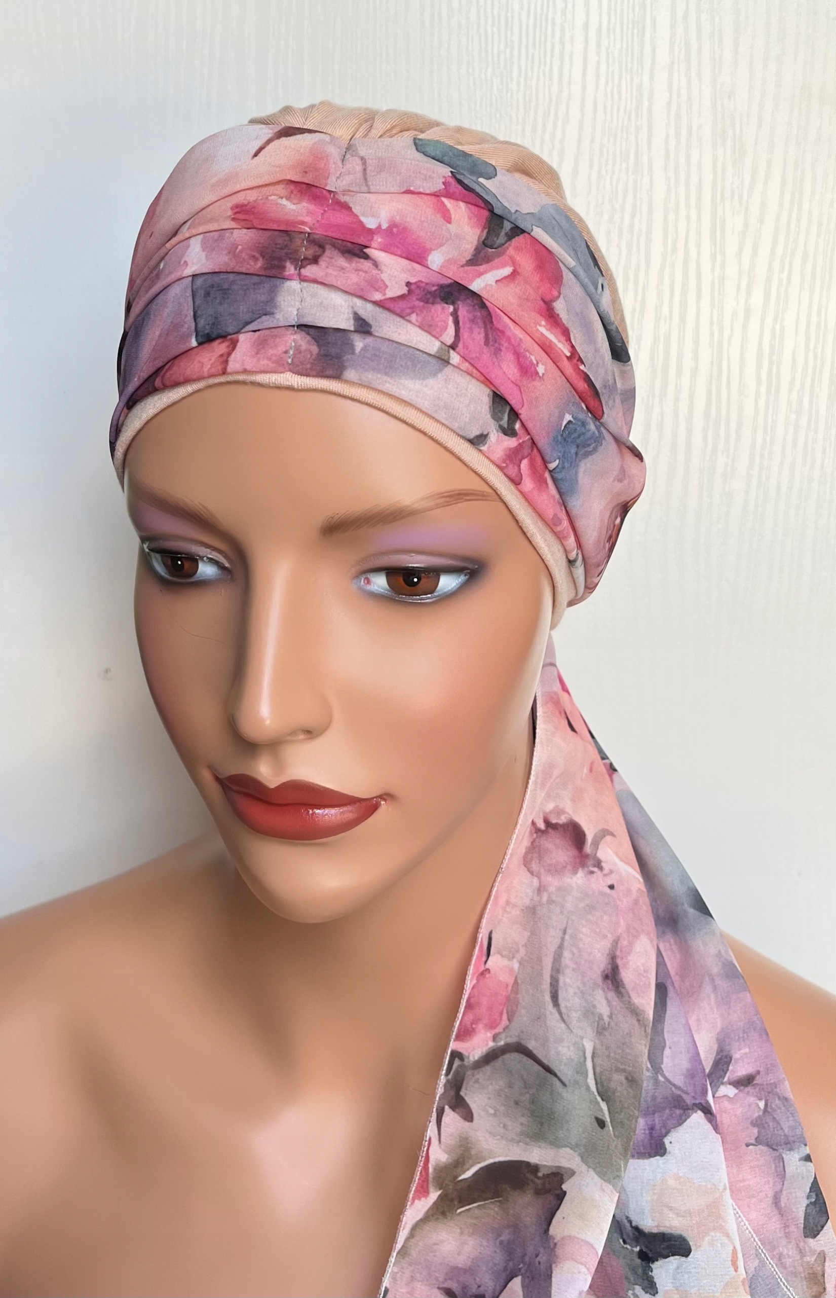 Тюрбан Wera — це готовий капелюх із постійно прикріпленим шарфом, який можна використовувати для різноманітних композицій.