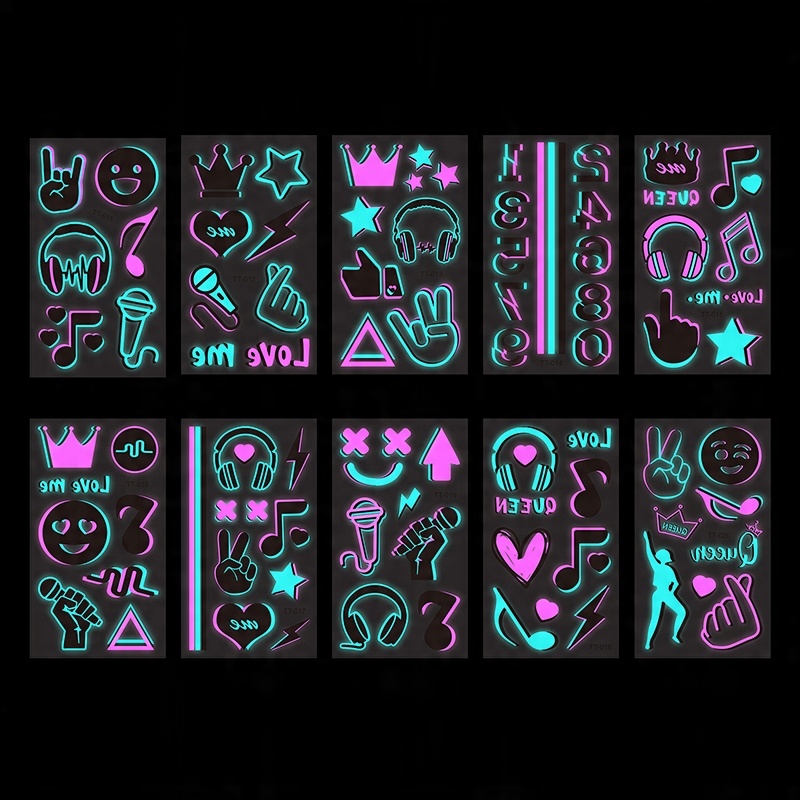 Довге світіння: Насолоджуйтесь до 7 днів жвавого, люмінесценції для очей, завдяки нашим високоякісним тимчасовим татуюванням. Ці татуювання були розроблені таким чином, щоб вони легко світили у УФ або в темряві, завдяки чому вони ідеально підходять для вечірок, фестивалів та вечірніх виїздів.
