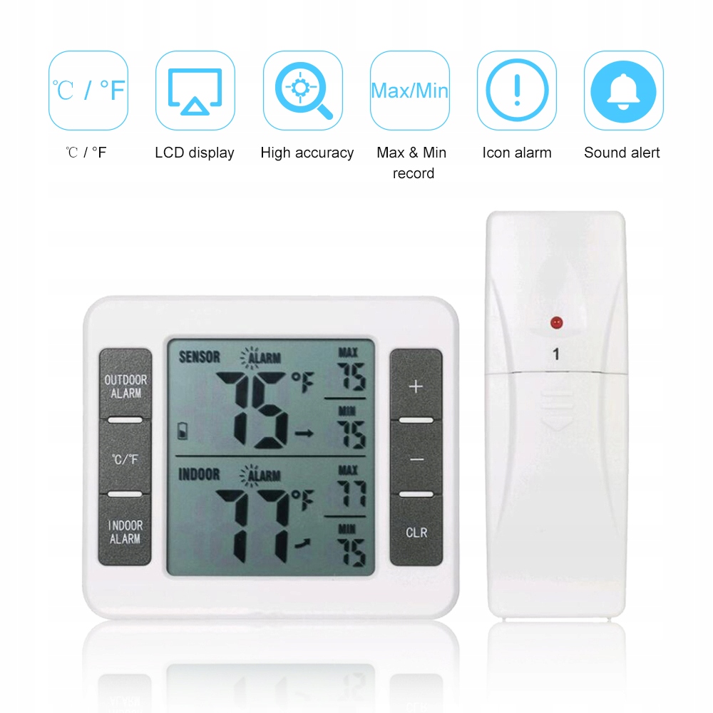 - Цифровий метр температури, з бездротовим датчиком, підходить для зовнішнього або в приміщенні, наприклад, вітальня, спальня, дитяча кімната, офіс, підвал з винами, парниковими, підвалами тощо. 4 4