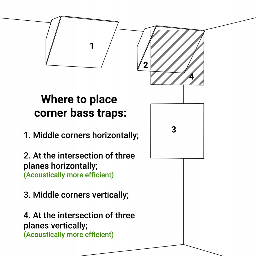 ПРИЗНАЧЕННЯ: Поглинає низькі, високі та середні частоти, луну та інші дратівливі звуки. Кутова установка.