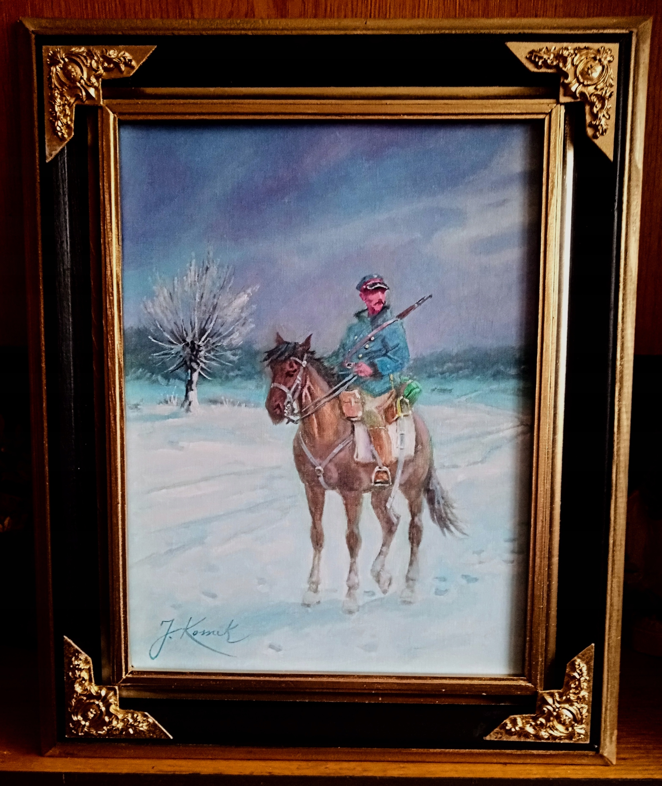 UŁAN ZWIADOWCA - OBRAZ OLEJNY , PŁÓTNO-J.KOSSAK