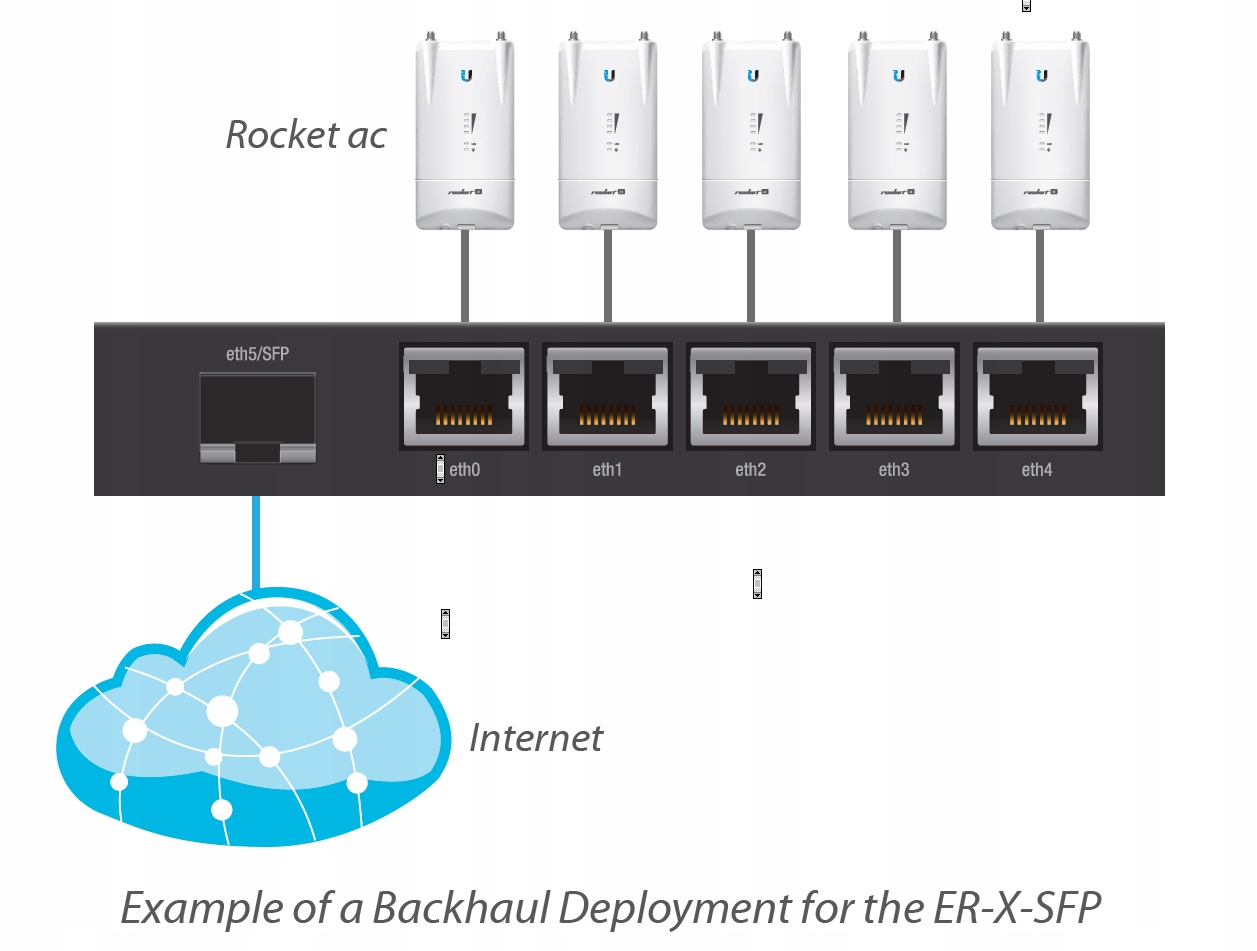 EdgeRouter X SFP — це найменший маршрутизатор із нової лінійки продуктів Ubiquiti EdgeMax™. Пристрій оснащений п'ятьма портами Gigabit Ethernet і одним портом SFP (Gigabit). Завдяки двоядерному процесору MIPS64 із тактовою частотою 880 МГц маршрутизатор досягає безпрецедентної продуктивності серед пристроїв цього класу.