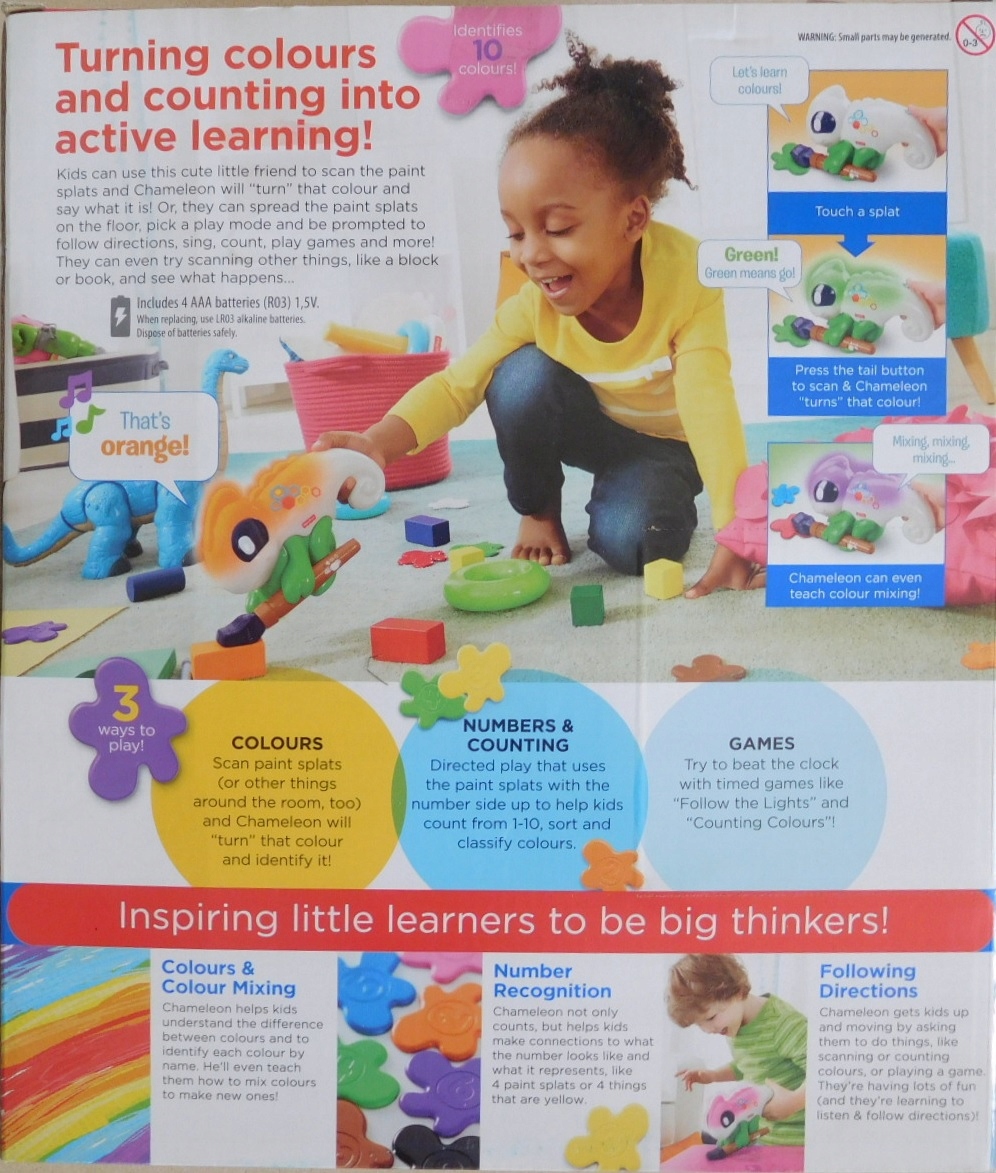Розумний хамелеон — це одна з нових іграшок Fisher-Price Think & Learn, яка виходить за рамки ABC і 123, щоб допомогти дітям навчитися думати самостійно. Кожна іграшка розвиває такі навички 21-го століття, як цікавість, експериментування та вирішення проблем, чого діти ще не бачили. Вони беруть участь у практичних, відкритих відкриттях, які допомагають їм легко опанувати нові навички.