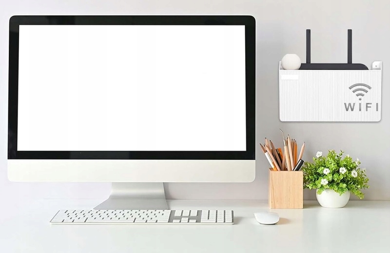 UCHWYT ŚCIENNY PÓŁKA ŚCIENNA OSŁONA NA ROUTER ORGANIZER WIFI SWITCH BIAŁA