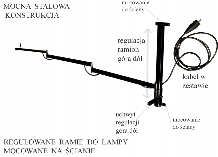 Uchwyt do lampy regulowany do pracowni garażu warsztatu na długim ramieniu