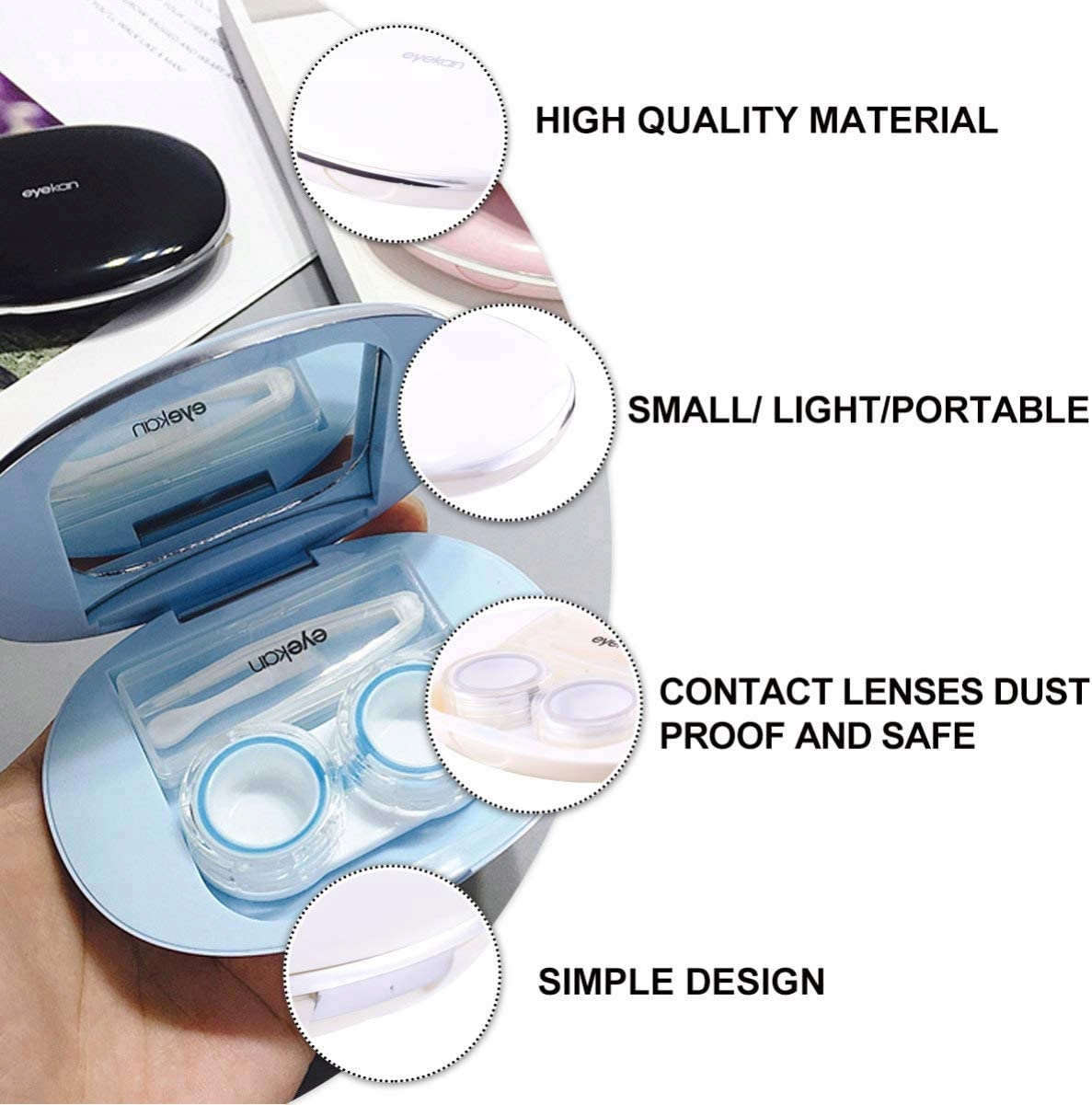 легко носити малий розмір легкий легко носити. Підходить для використання під час подорожей або активного відпочинку. Колір Білий. Виготовлений з високоякісних матеріалів, які прослужать тривалий час. Простий дизайн. Ідеально підходить для розміщення сумок на столах і шафах або в будь-якому іншому місці для прикраси. Він має простий дизайн, але дуже практичний у використанні та забезпечує великий комфорт. Захистіть свої контактні лінзи від пилу та безпечно.