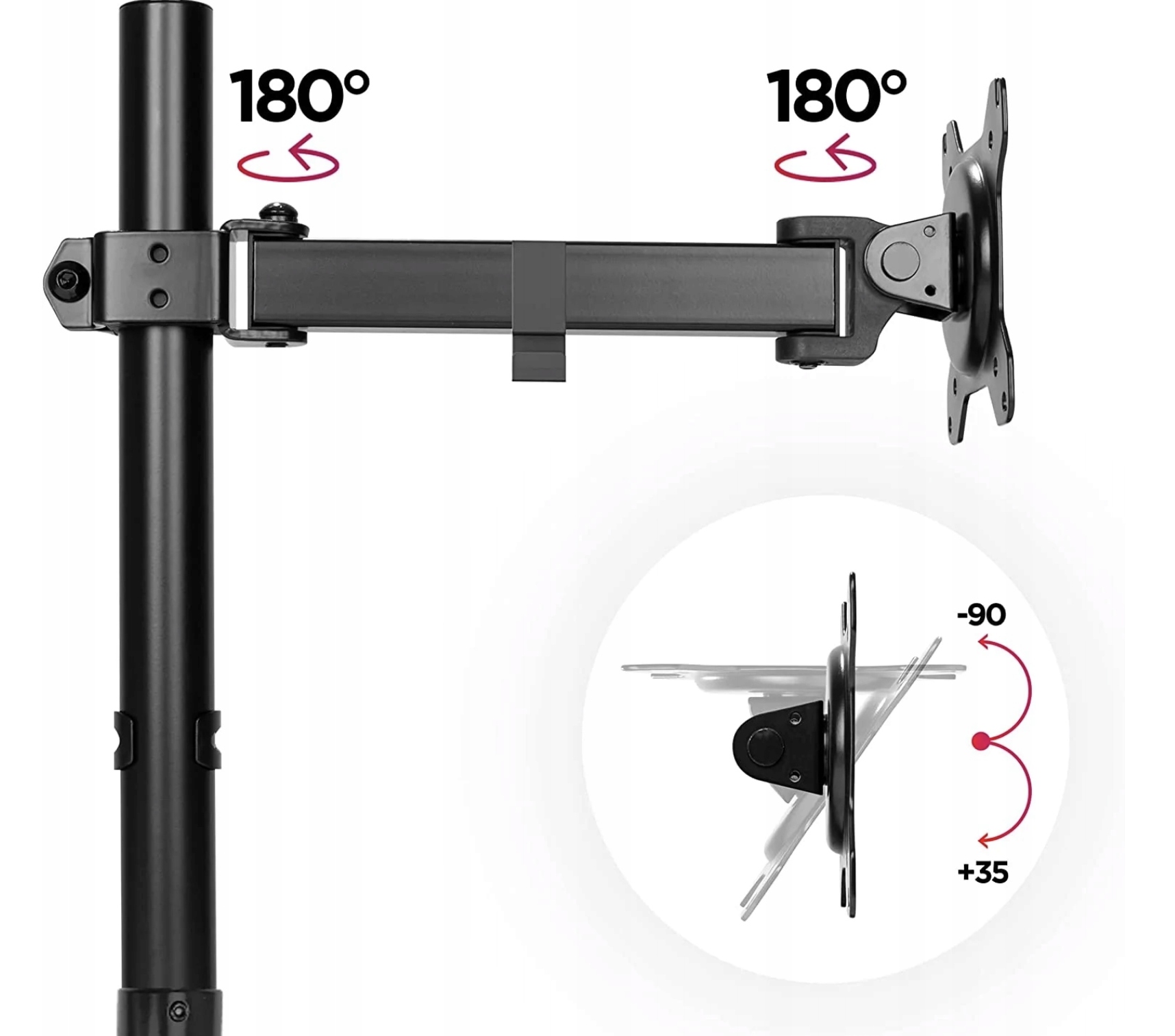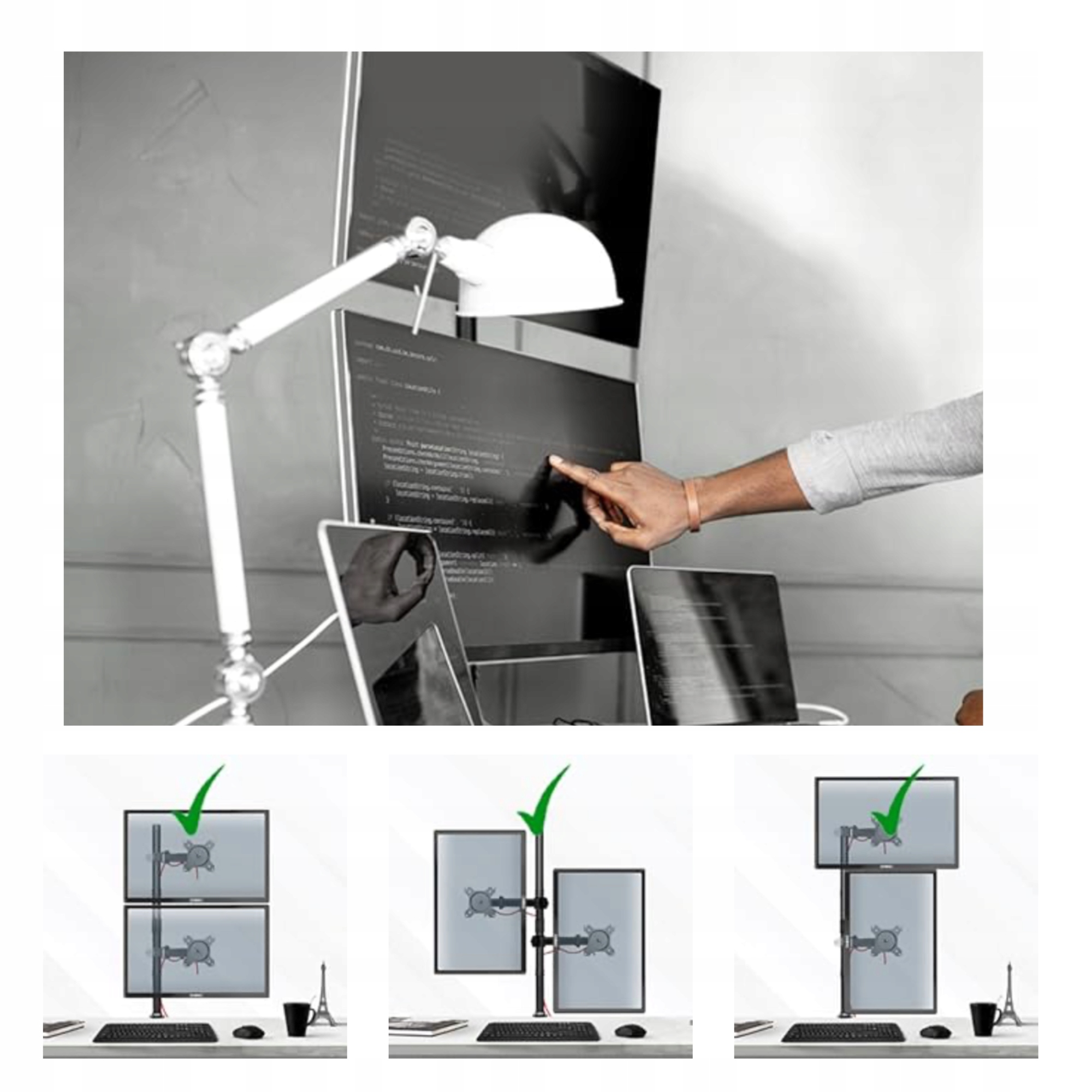 UCHWYT NA DWA MONITORY PIONOWY NA BIURKO REGULACJA KĄTA DŁUGI SŁUPEK