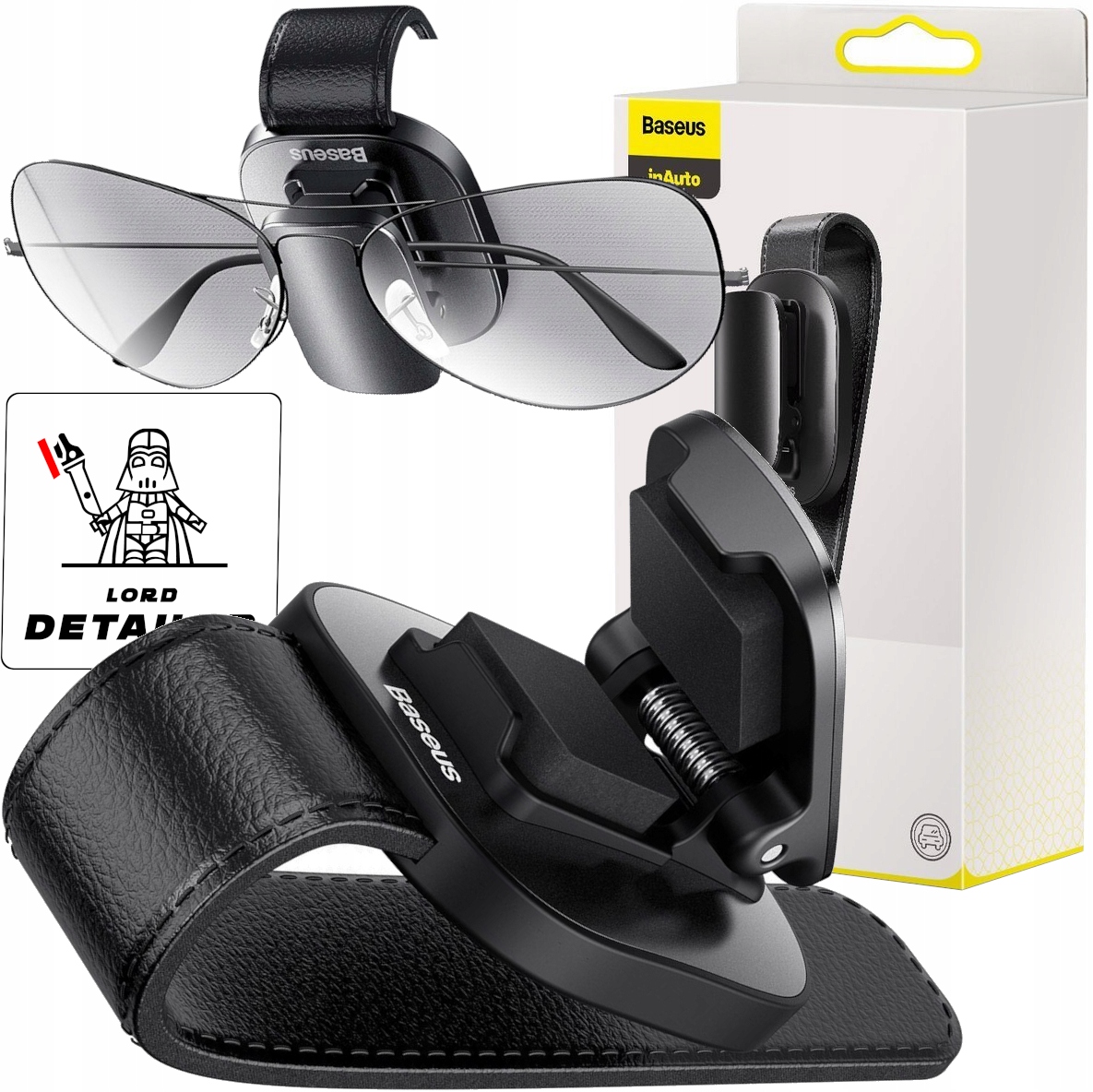 Uchwyt na okulary Baseus Platinum Vehicle czarny + WLEPKA LORD DETAILER