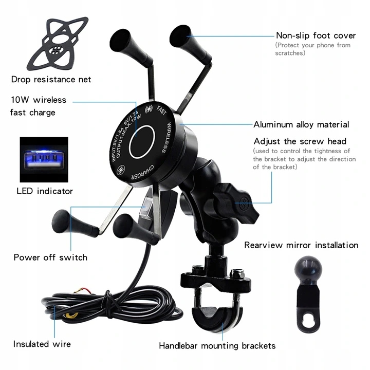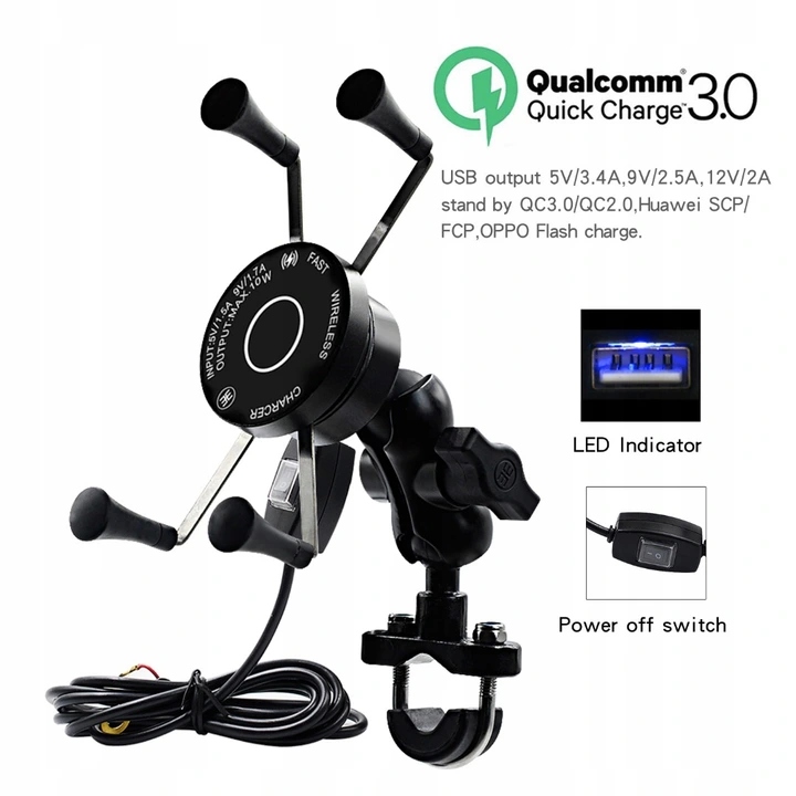 Uchwyt na telefon z ładowarką MotoChamp czarny