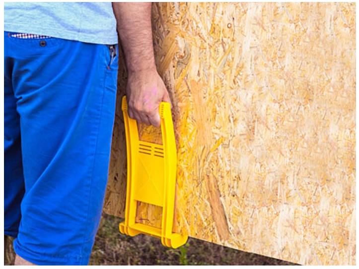 Легка та ударостійка панель ABS. Використовується для зручного транспортування будівельних плит та інших плоских матеріалів. Підйомна ручка нахилена від матеріалу, щоб захистити ваші руки. Виріз ретельно розроблено, щоб надійно утримувати панель під час транспортування.