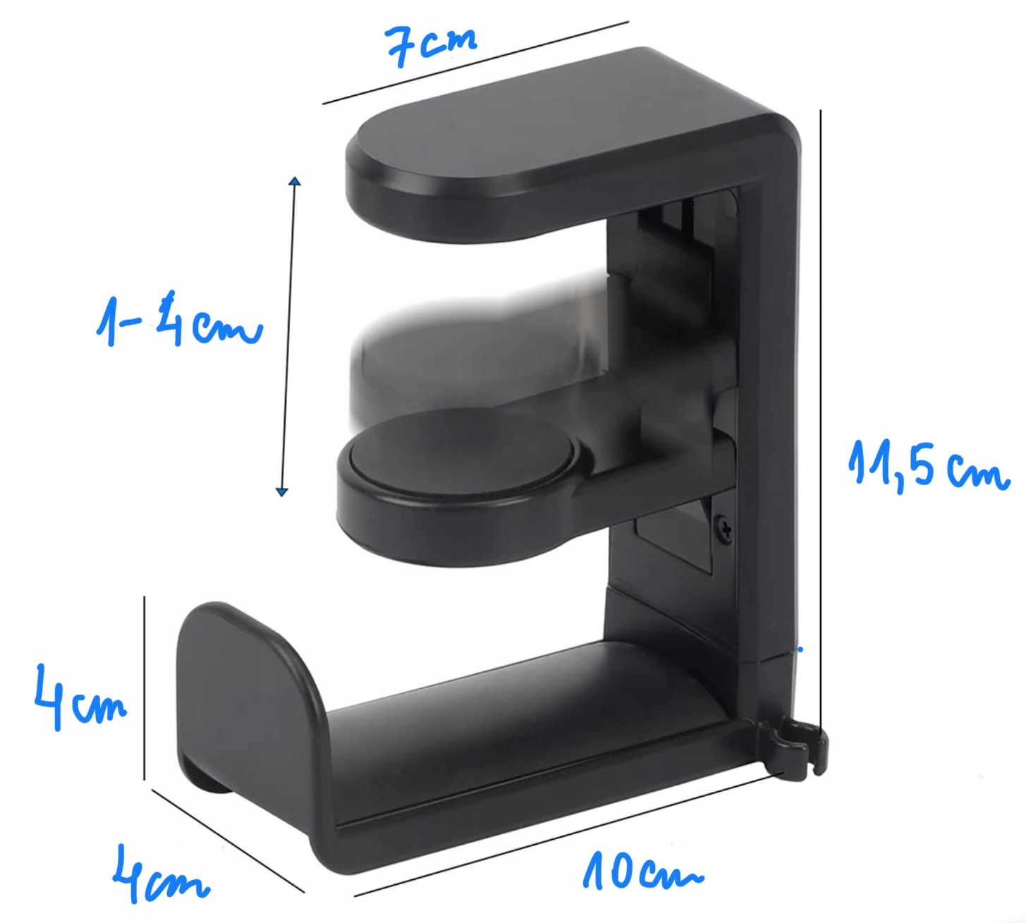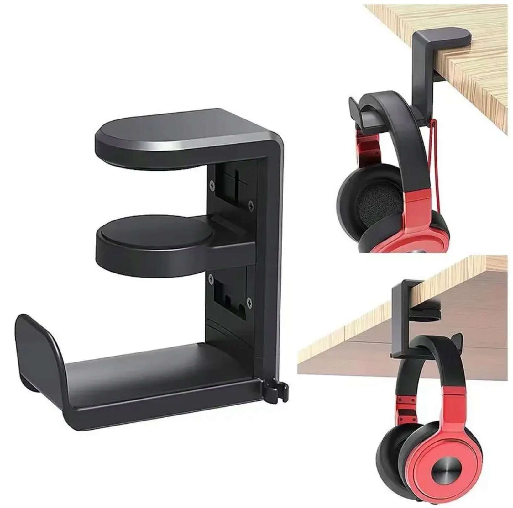 UCHWYT WIESZAK NA SŁUCHAWKI TORBĘ DO BIURKA STOŁU NA PÓŁKĘ obrotowy CZARNY