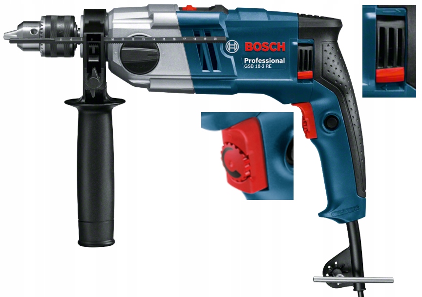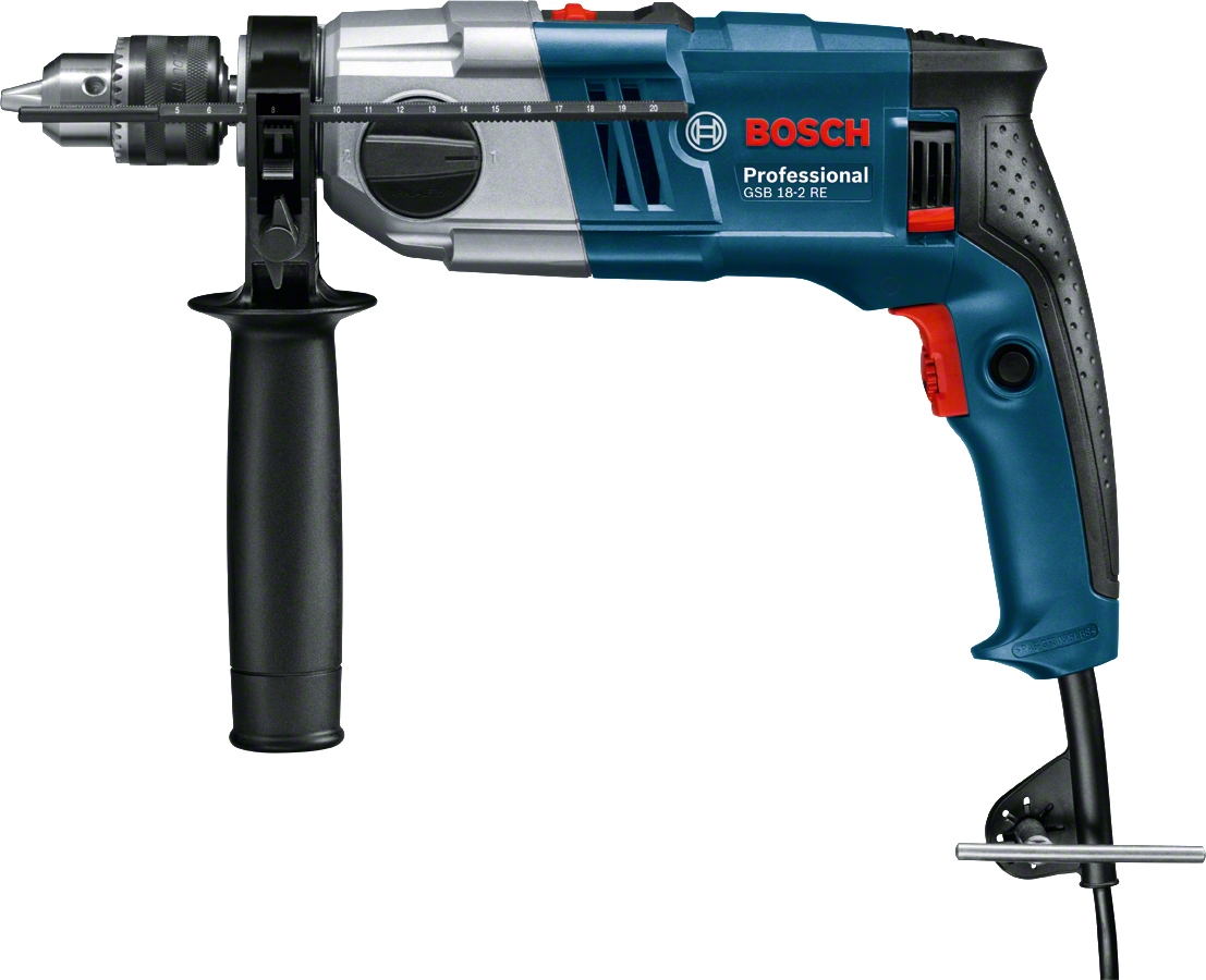 Ударний дриль Bosch GSB 18-2 RE призначений для сухого ударного свердління в цеглі, бетоні та камені алмазними свердлами в цеглі та силікатній цеглі, а також для свердління в дереві, металі, керамічній плитці. і пластмаси.
