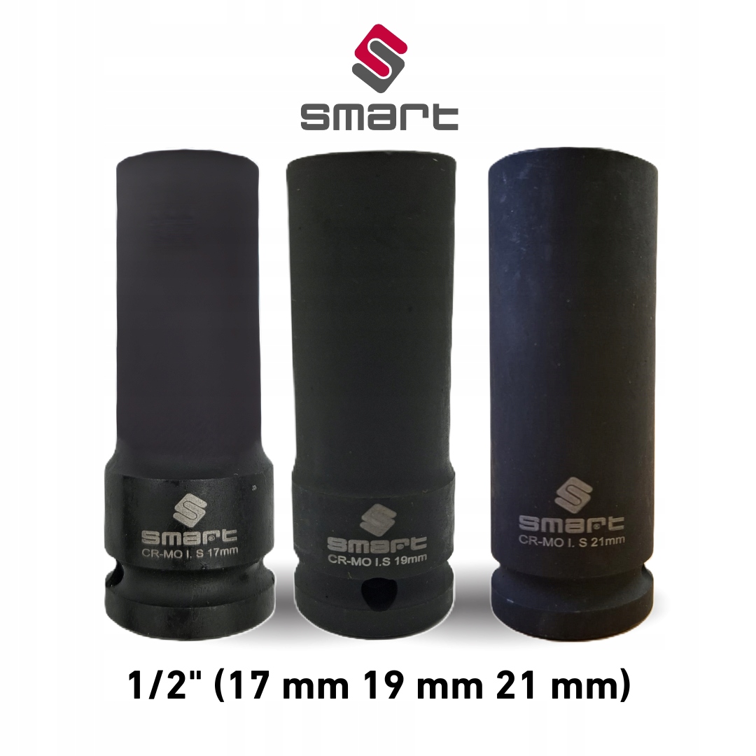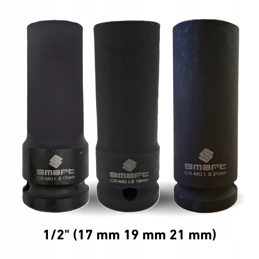 SMART набір із трьох професійних ударних головок розміром 17, 19 та 21 мм, виготовлених із хромомолібденової сталі (CrMo). Призначений для роботи з ударними гайковими ключами, ідеально підходить для обслуговування коліс і застосування в майстерні.