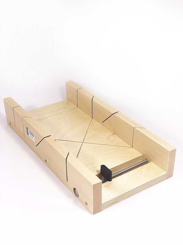 Укоси використовуються для різання під кутом 90° і 45°. Оснащений двома затискачами для фіксації заготовки. Виготовлений з деревини бука та комбінації фанери та дерева. Клеєні та гвинтові з’єднання.