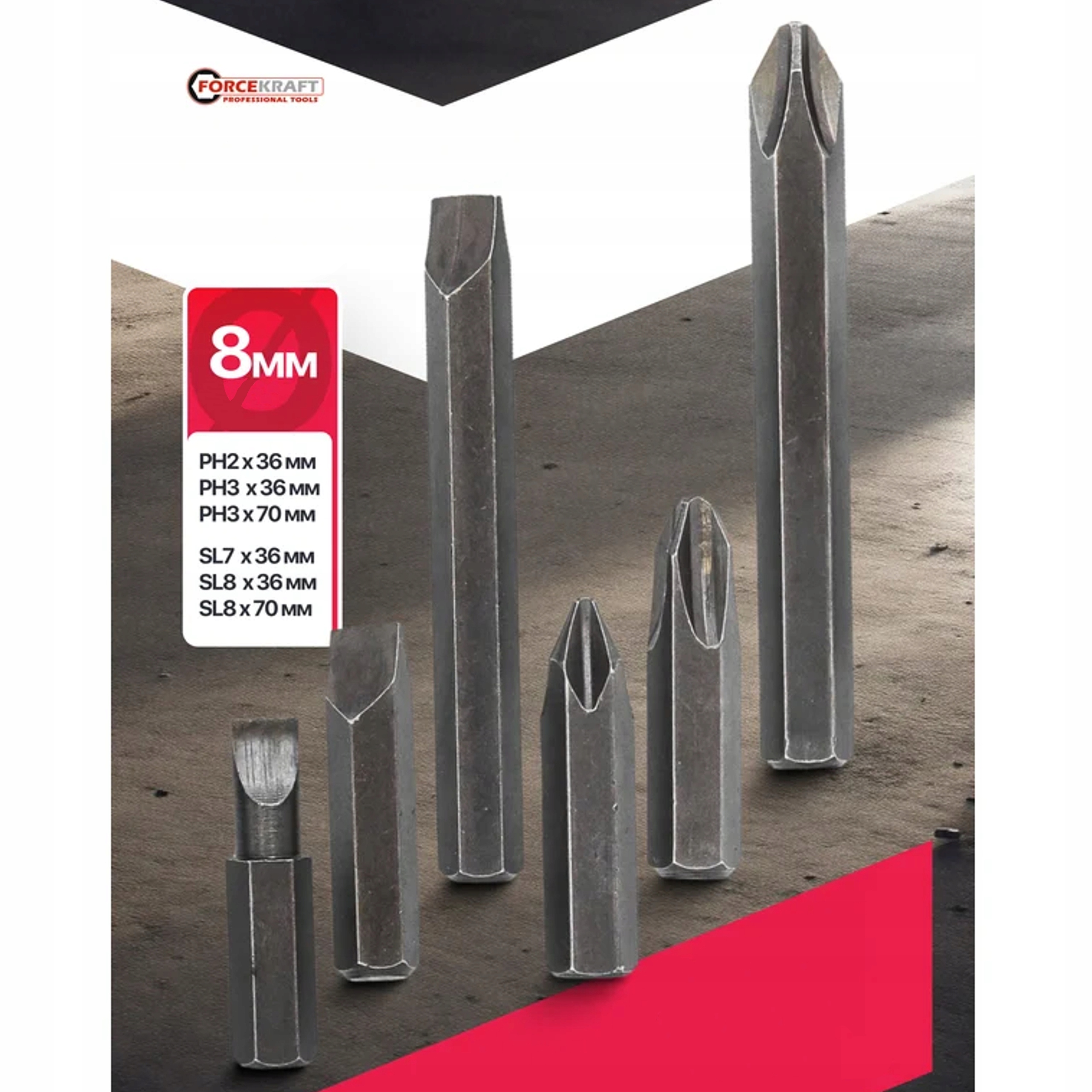 Ударна викрутка 1/2" з набором біт і адаптером, валіза на 8 предметів. Forcekraft