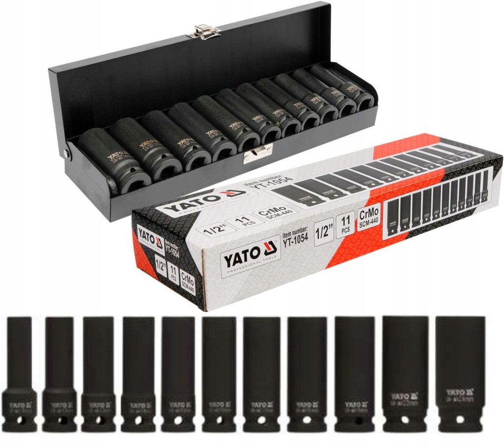 Y A T O довгі ударні головки - набір з 11 торцевих ключів.