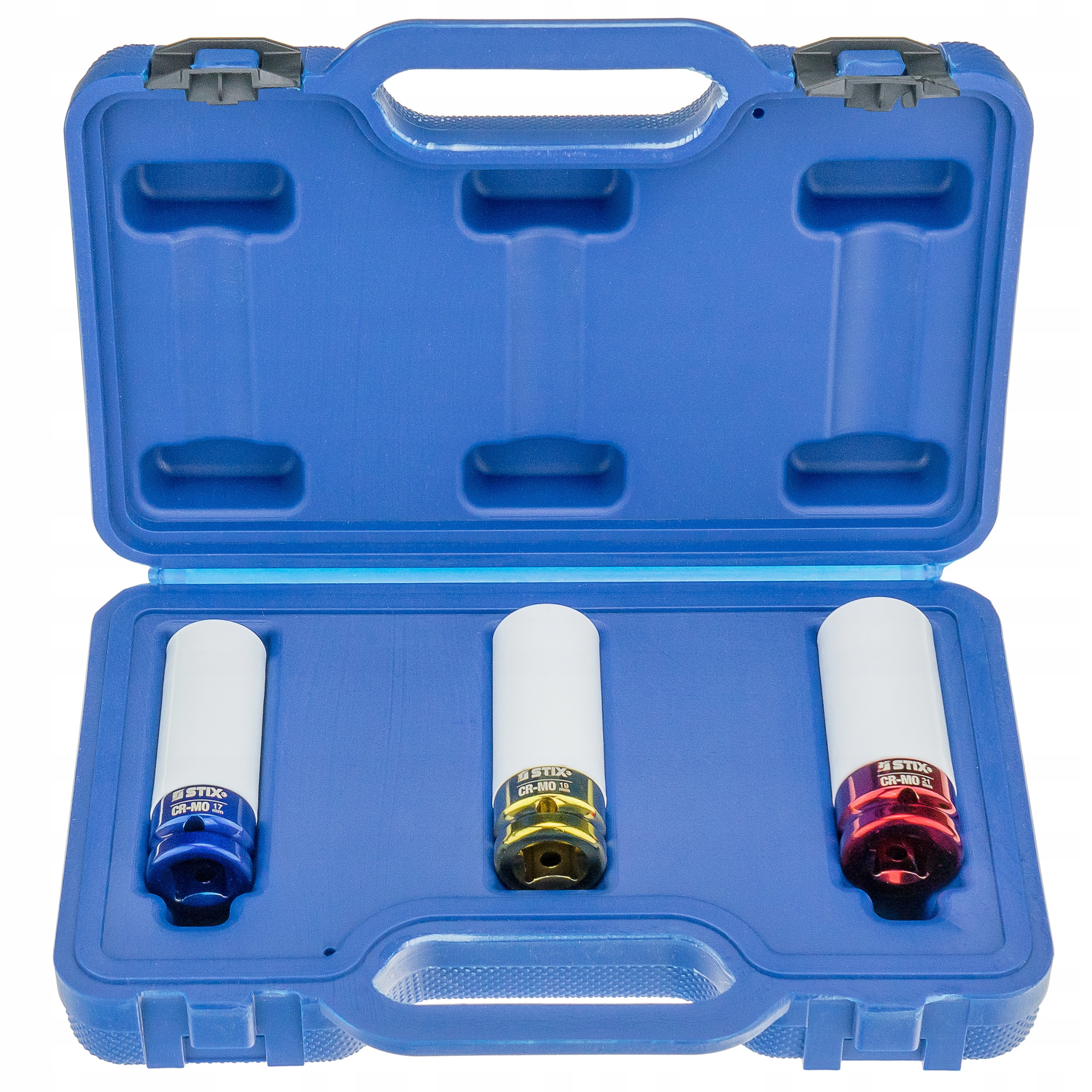 Набір складається з трьох головок розміром 17 мм, 19 мм і 21 мм, які підходять для найпопулярніших розмірів гвинтів і гайок, що використовуються в дисках легкових автомобілів. Це робить його ідеальним набором для роботи з більшістю автомобілів на ринку.