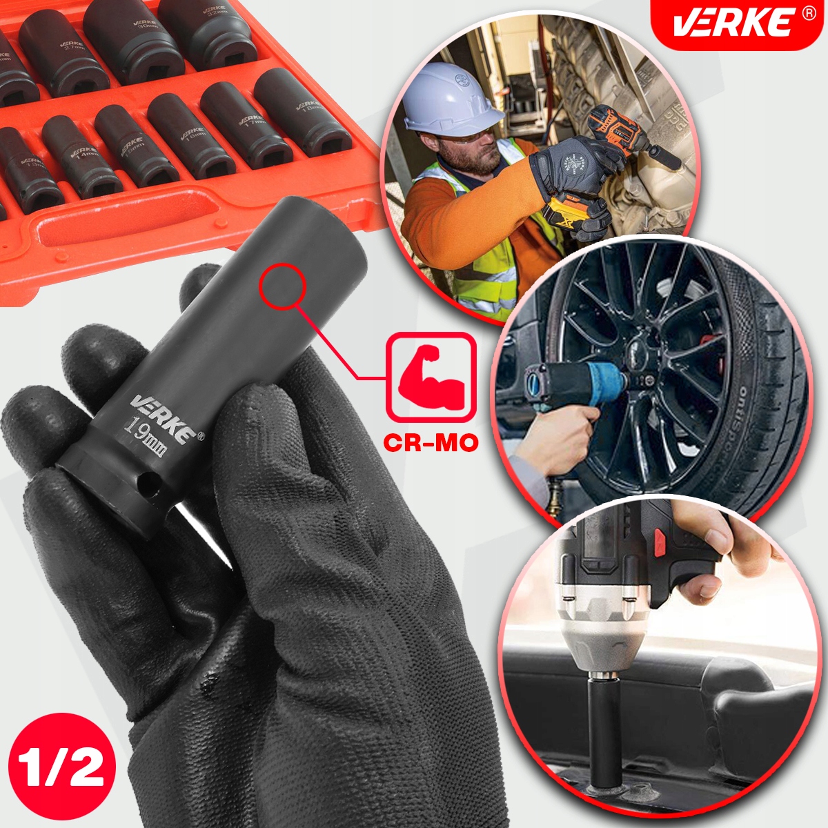 НАБІР УДАРНИХ ГНІЗДІВ 1/2" 10-32MM VERKE