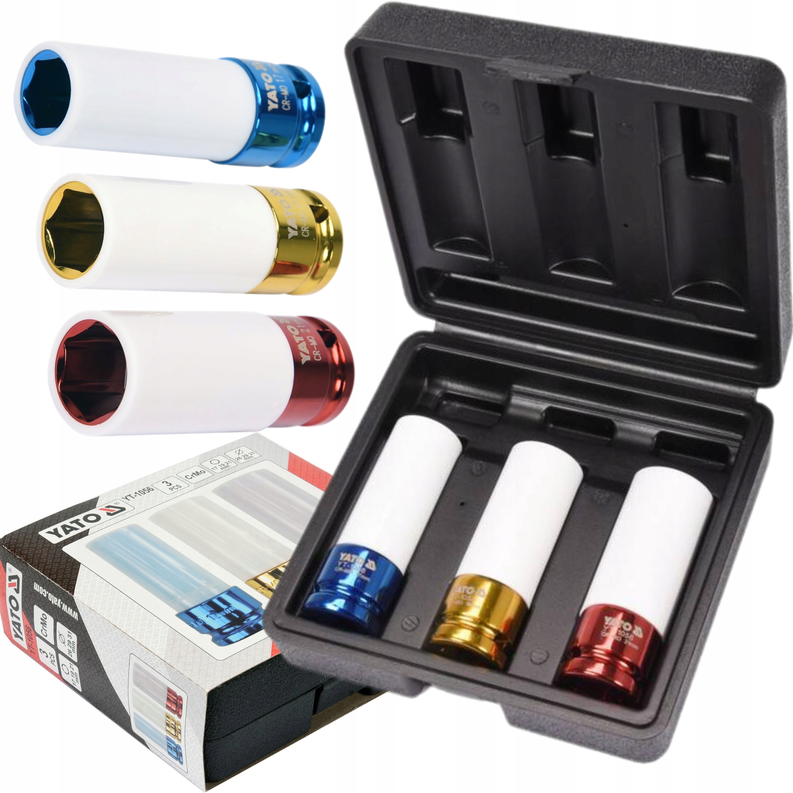 YATO НАБІР УДАРНИХ ГНІЗДІВ 1/2" ДЛЯ ЛИТОСПЛАВНИХ ДИСКІВ 17 19 ДОВЖИНОЮ 21 мм YT-1056
