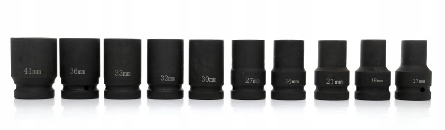 Професійний набір шестигранних головок 1" 17-41 мм, призначених для пневматичних і електричних ударних гайковертів. Дозволяє працювати: загвинчувати, закручувати та відкручувати гайки та болти з достатньою силою. Набір використані 10 елементів виготовлені автомеханіками, вулканізаторами, в сервісах, слюсарями та всіма майстернями професіоналами.