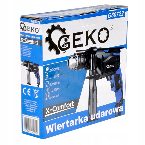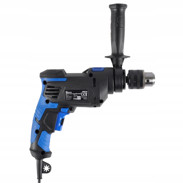 Ударна дриль Geko оснащена енергозберігаючим двигуном, який генерує робочу потужність 810 Вт, що гарантує ефективне ударне свердління навіть у дуже твердих матеріалах.