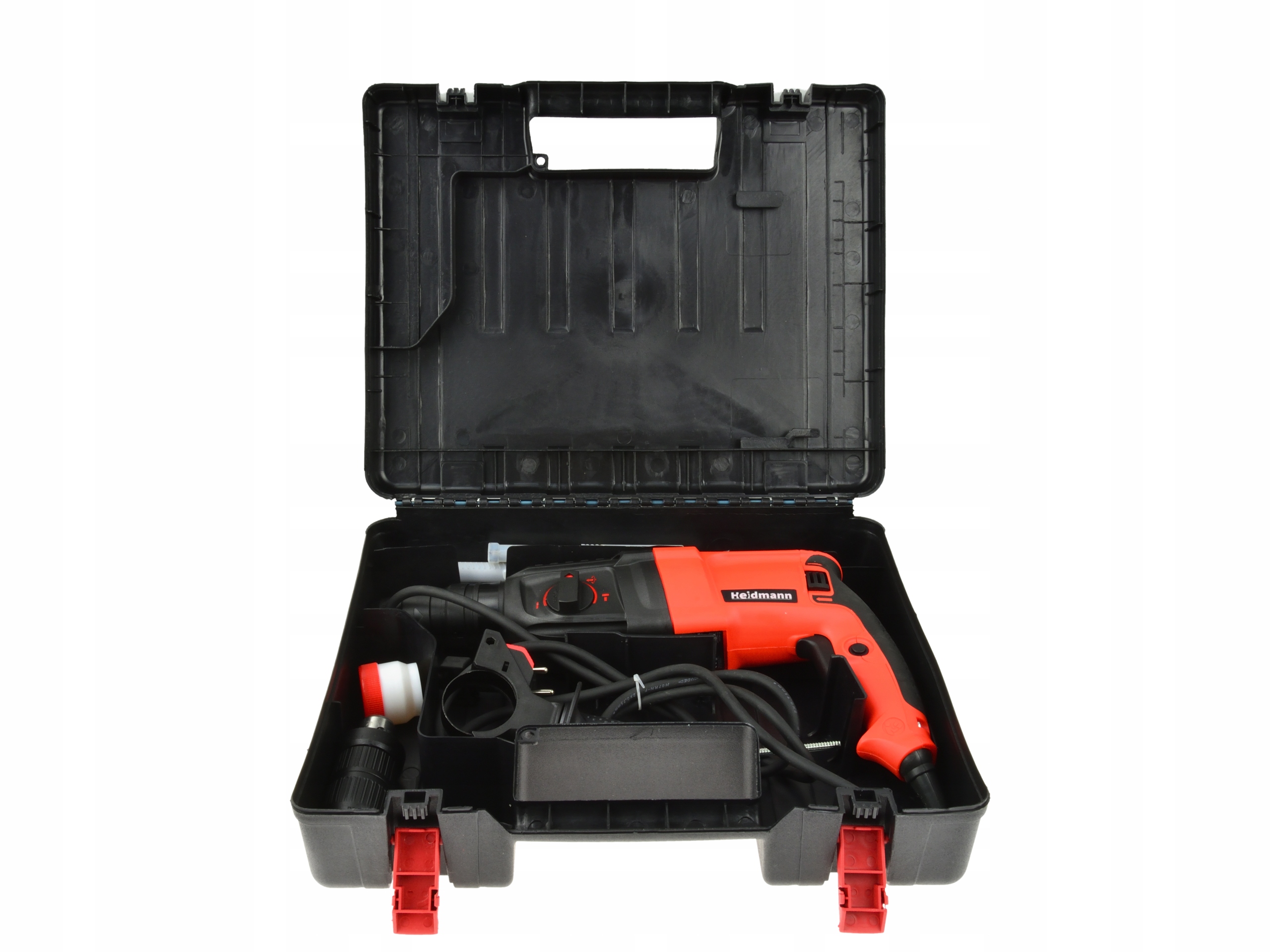 Ударний дриль Heidmann оснащений ефективним електродвигуном потужністю 2400 Вт. Він ідеально підходить для всіх видів будівельних і ремонтних робіт, таких як довбання, сколювання штукатурки, плитки, свердління, загвинчування/відкручування і т.д. Пристрій оснащений двома свердлильними головками (SDS+ і швидкозажимною головкою) з швидкісним змінити функцію.
