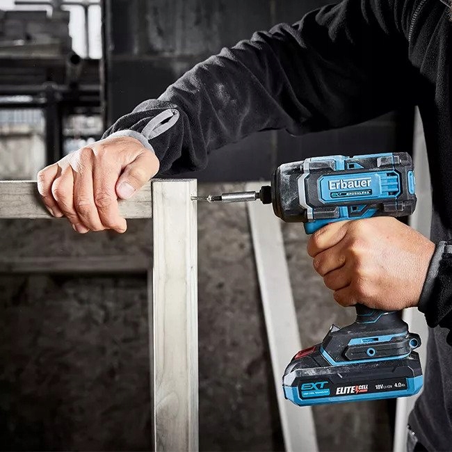 Ударна гайка Erbauer 18 В (акумулятор не входить) призначена для ремонтних і будівельних робіт. Модель дозволить вам працювати де завгодно. Вам не знадобиться електрична розетка, оскільки пристрій працює від акумулятора. Модель з ударною функцією відноситься до серії EXT. Це означає, що для гвинтової кришки можна використовувати акумулятор від інших електроінструментів цієї серії. Ви можете використовувати цей надійний пристрій для свердління отворів у різних матеріалах. Для свердління стіни добре підійде ударна гайка Erbauer без акумулятора. Прилад поставляється з наконечником PH2. Завдяки цьому можна буде негайно приступити до роботи